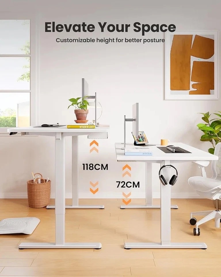 Designed for comfort and efficiency, the desk features smooth electric height adjustment, allowing easy transitions between sitting and standing positions. The integrated smart control panel features four programmable memory settings, allowing users to save their preferred heights with the touch of a button. The sturdy steel frame ensures stability across the full height range, while the splice board desktop design offers strength and practicality.