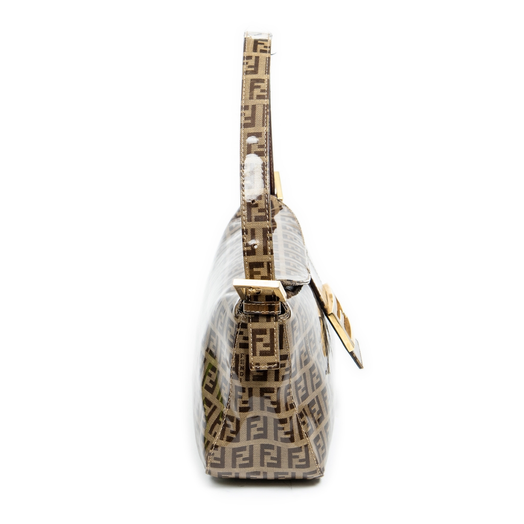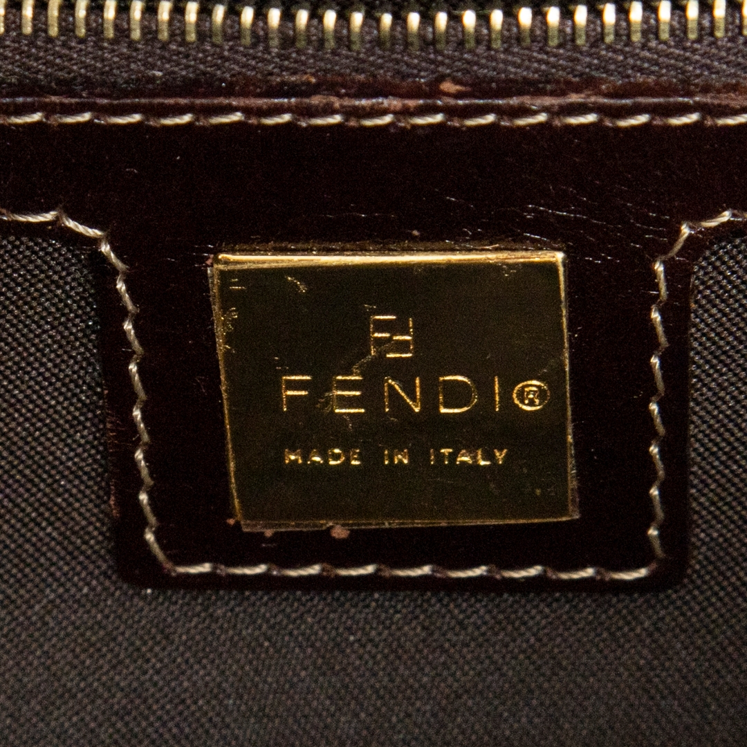 A vintage Fendi brown coated canvas Fold Over Flap Tote bag with a certificate of authenticity, Approximately 15cm height, 26cm width.