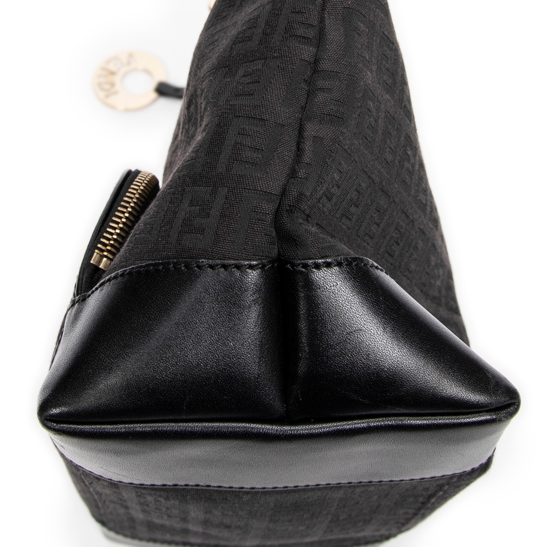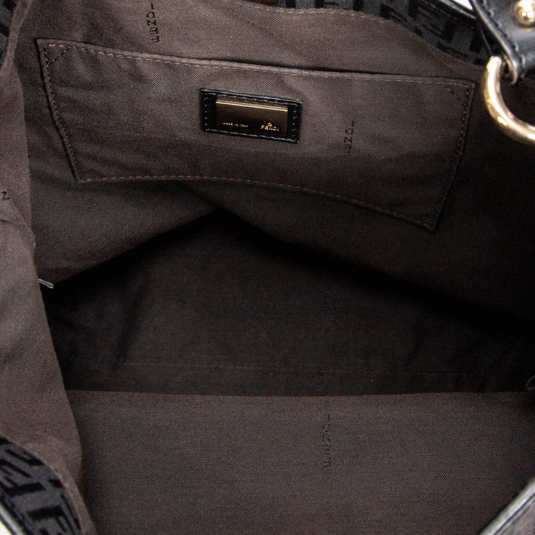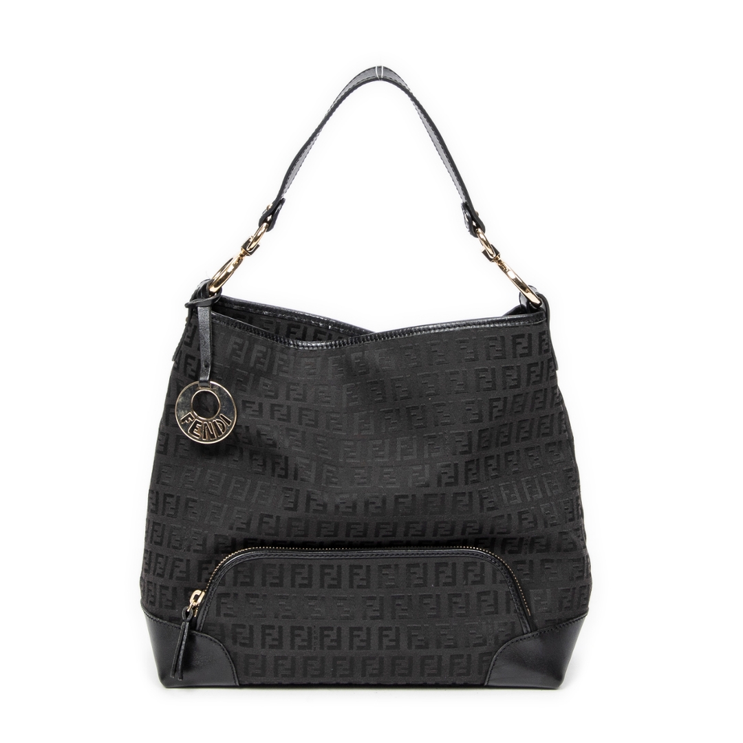 A vintage Fendi black canvas Front Pocket Hobo bag with a certificate of authenticity. Approximately 17cm height, 30cm width.