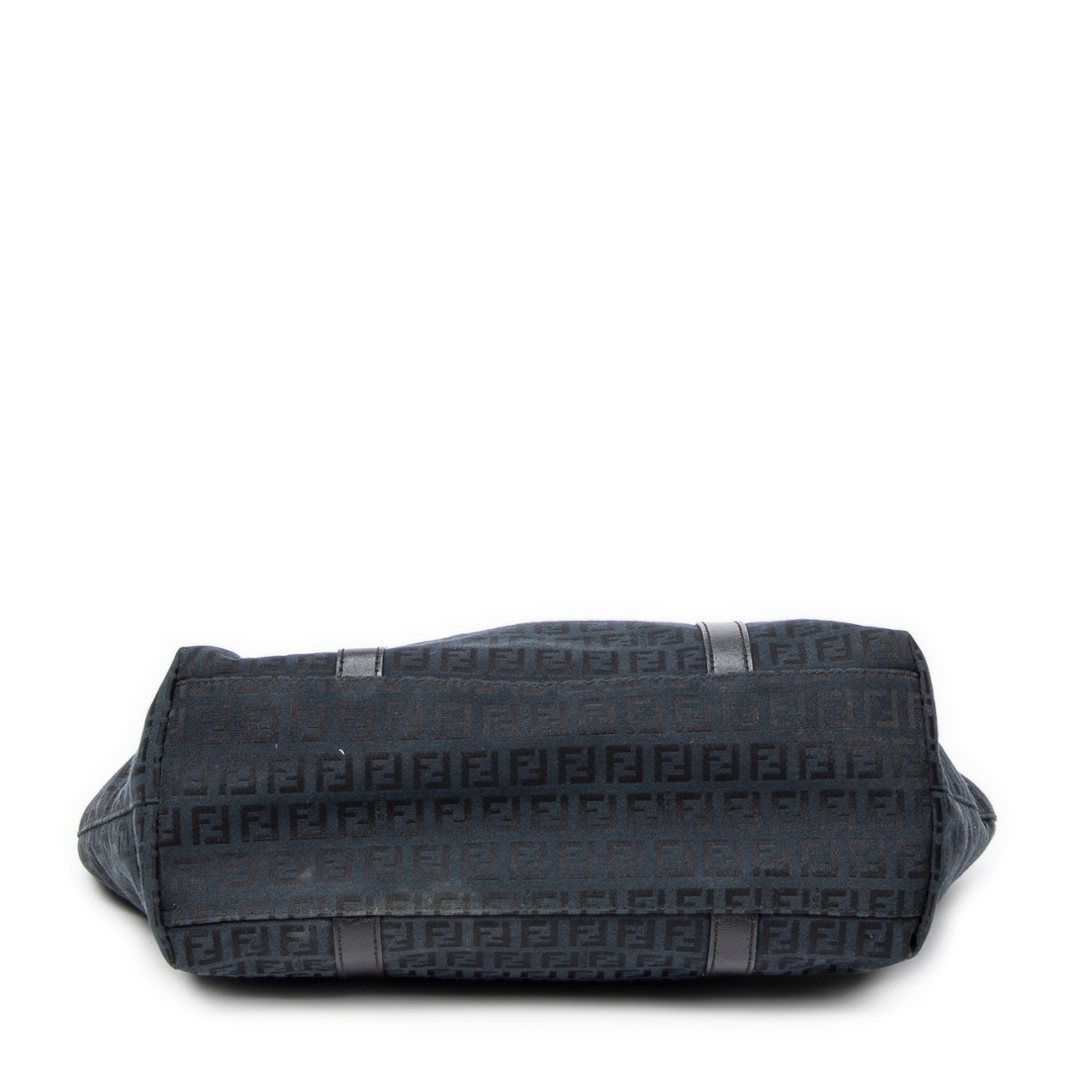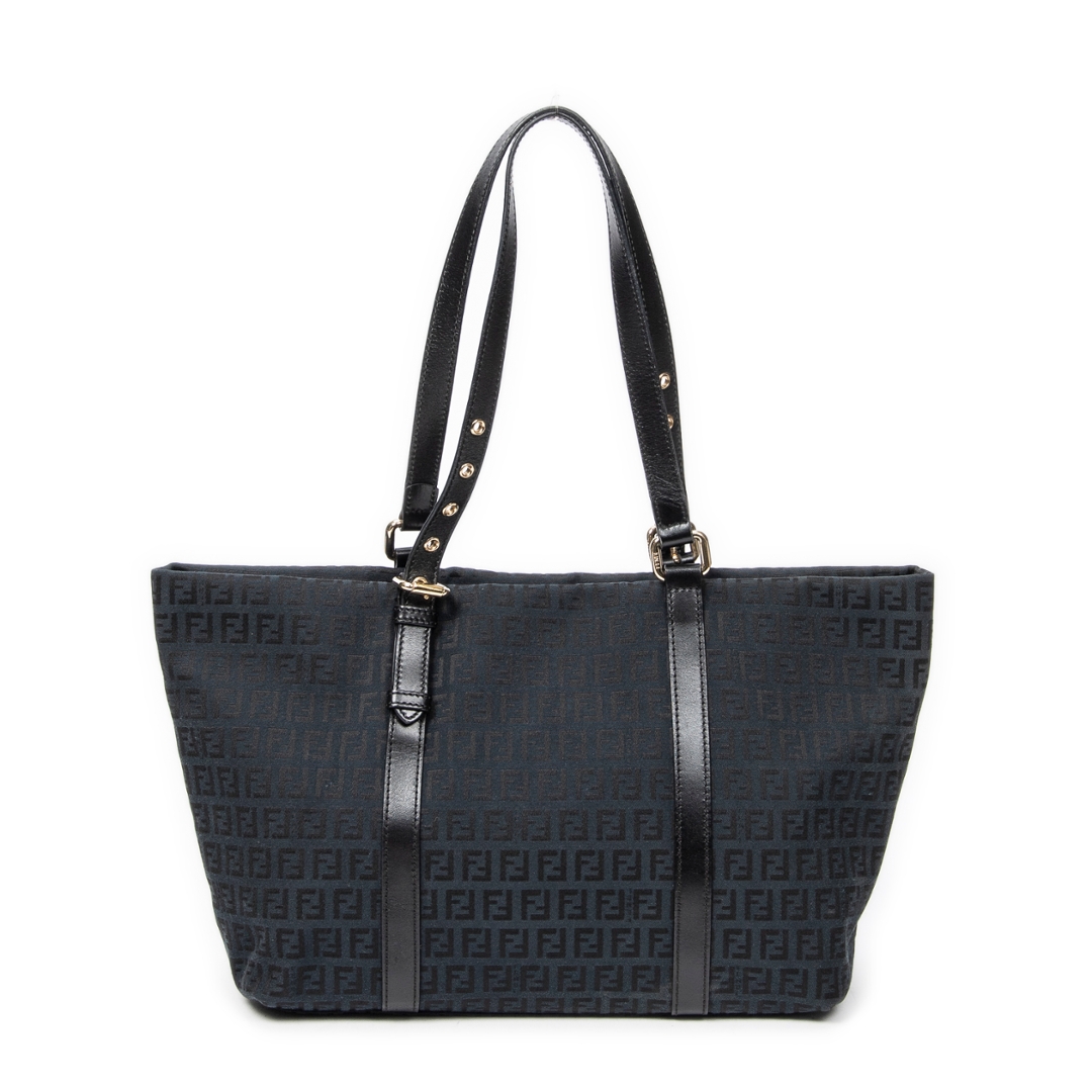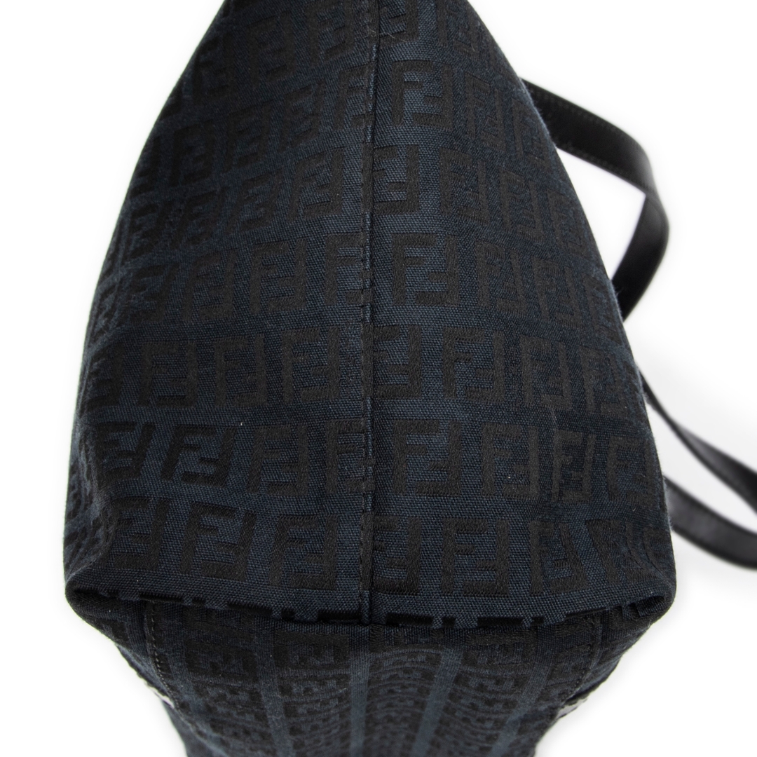 A vintage Fendi black canvas Large Charm Shopper bag with a certificate of authenticity. Approximately 26cm height, 34cm width.