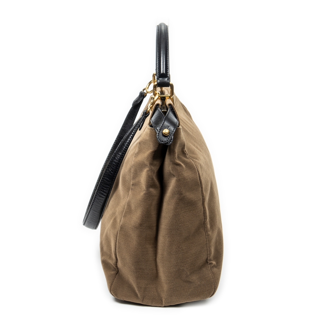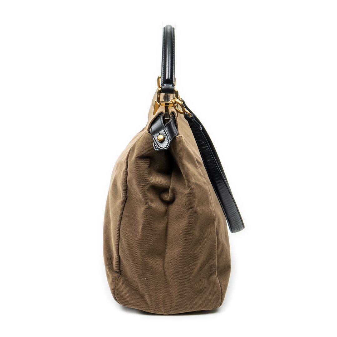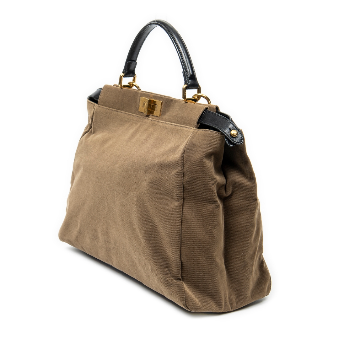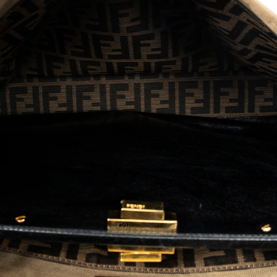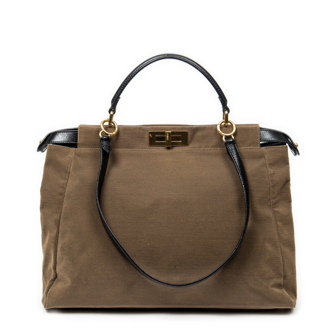 A vintage Fendi brown/black canvas Large Peekaboo bag with a certificate of authenticity. Approximately 30cm height, 40cm width.