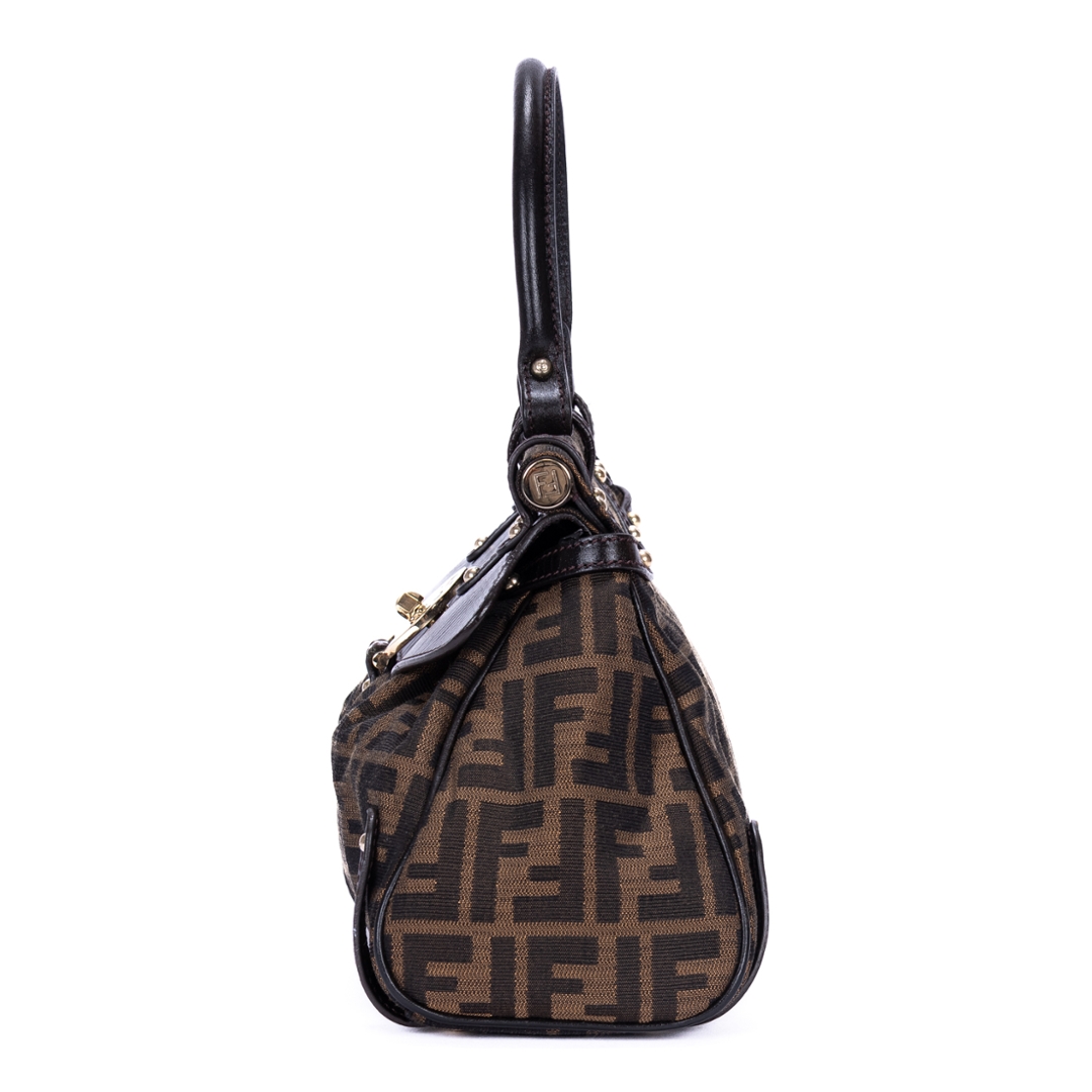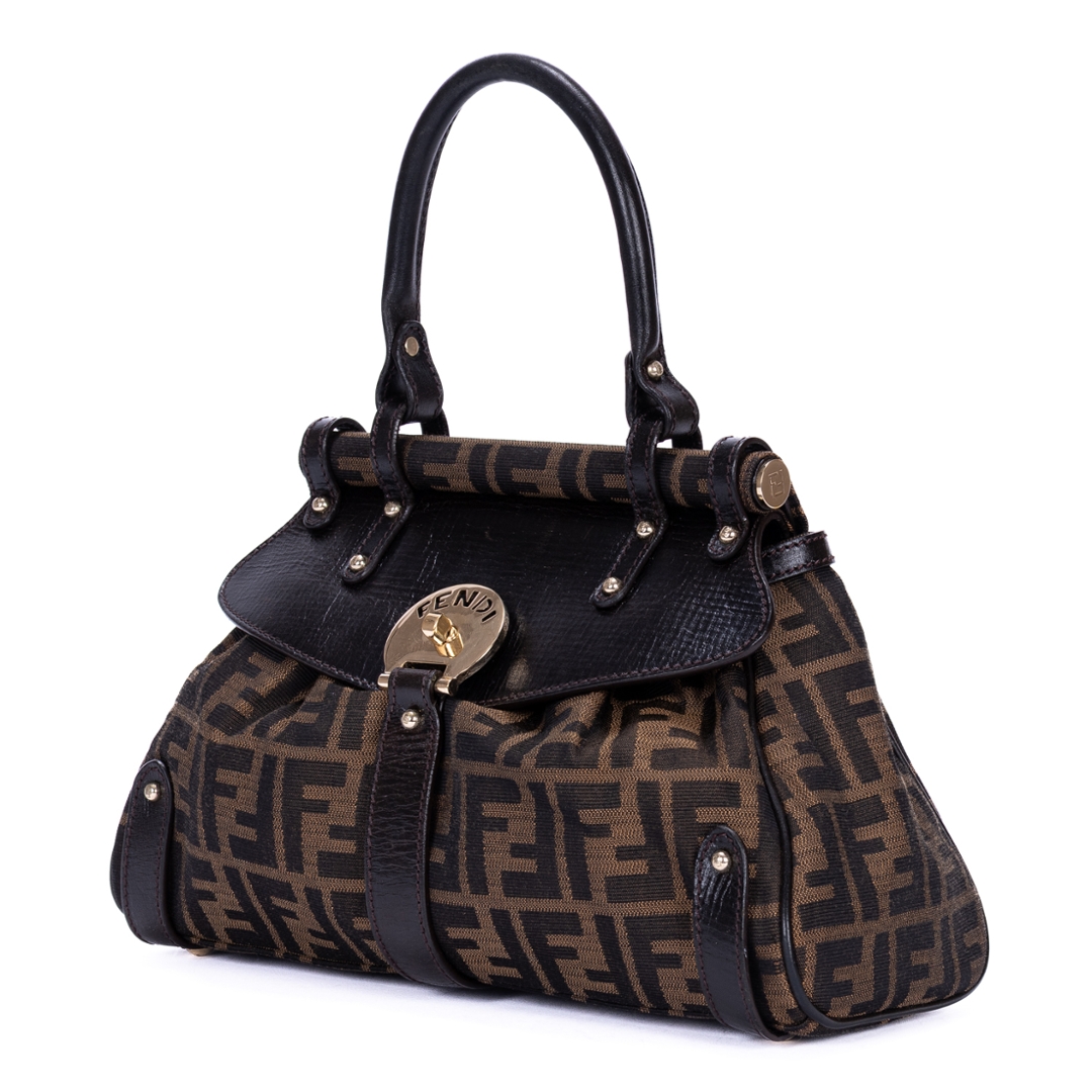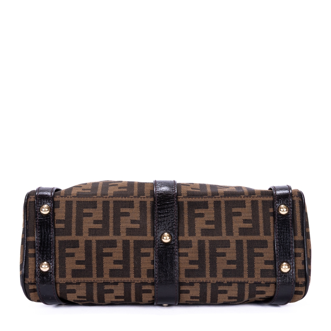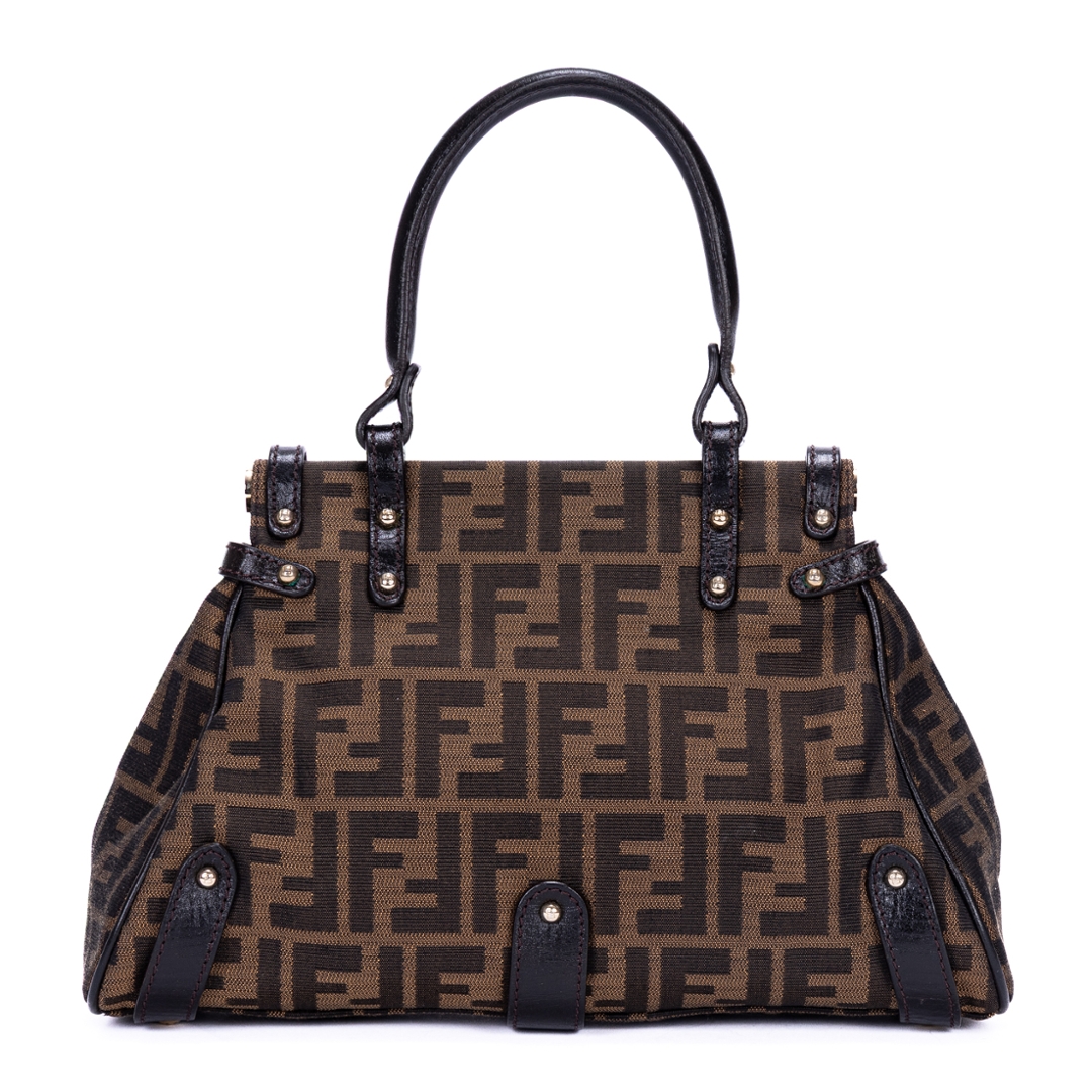 A vintage Fendi dark brown/beige canvas Magic bag with a certificate of authenticity. Approximately 19cm height, 30cm width.