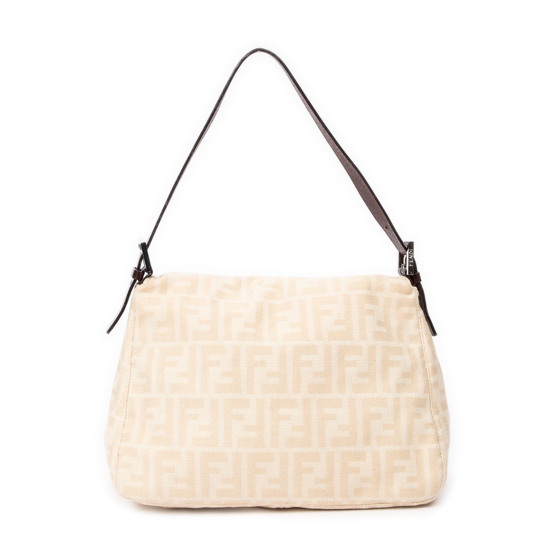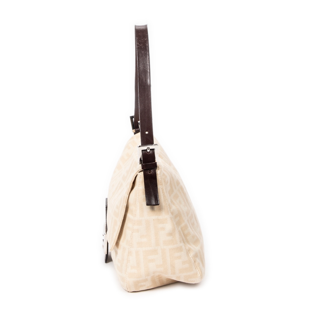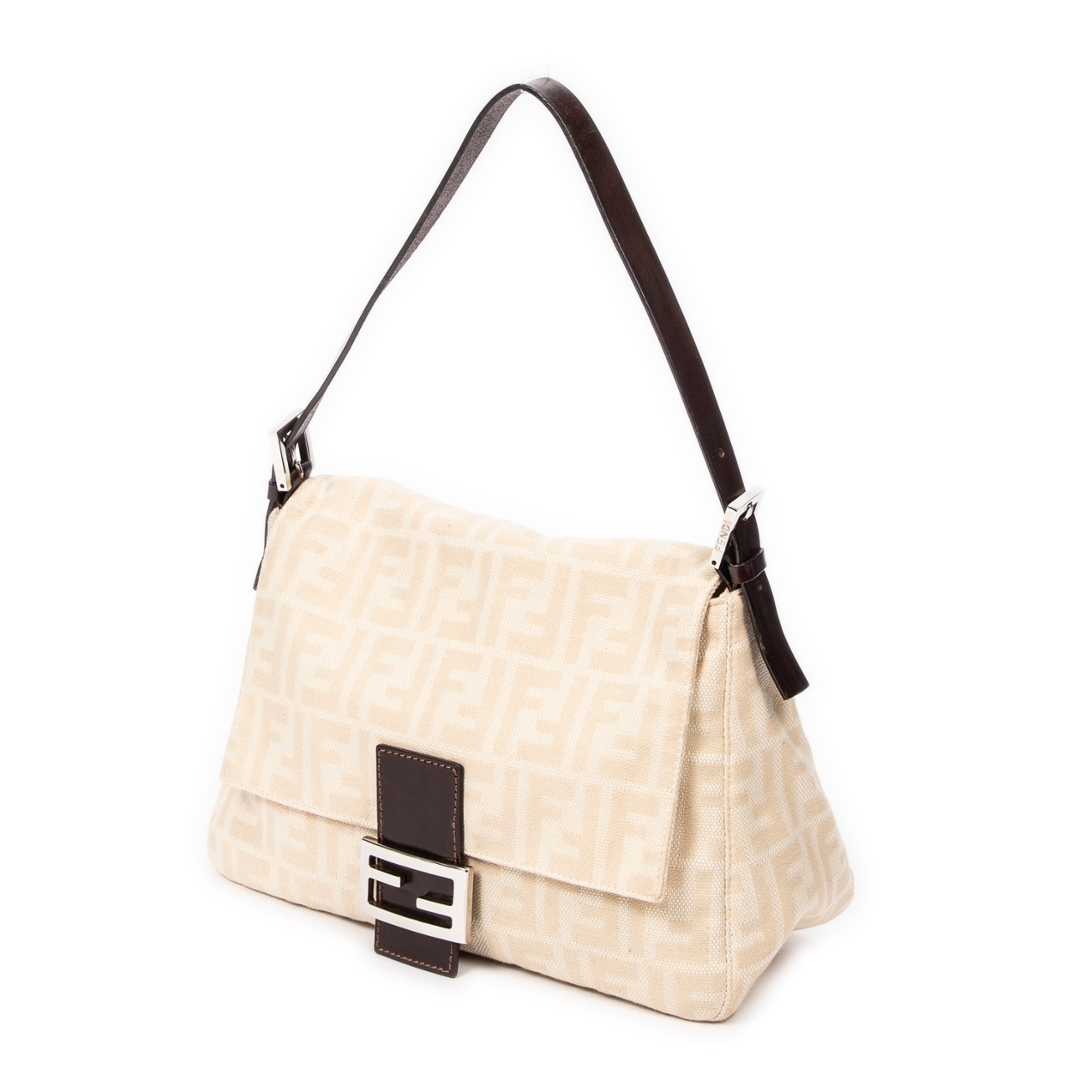 A vintage Fendi ivory/dark brown canvas Mama Forever bag with a certificate of authenticity, Approximately 20cm height, 29cm width.