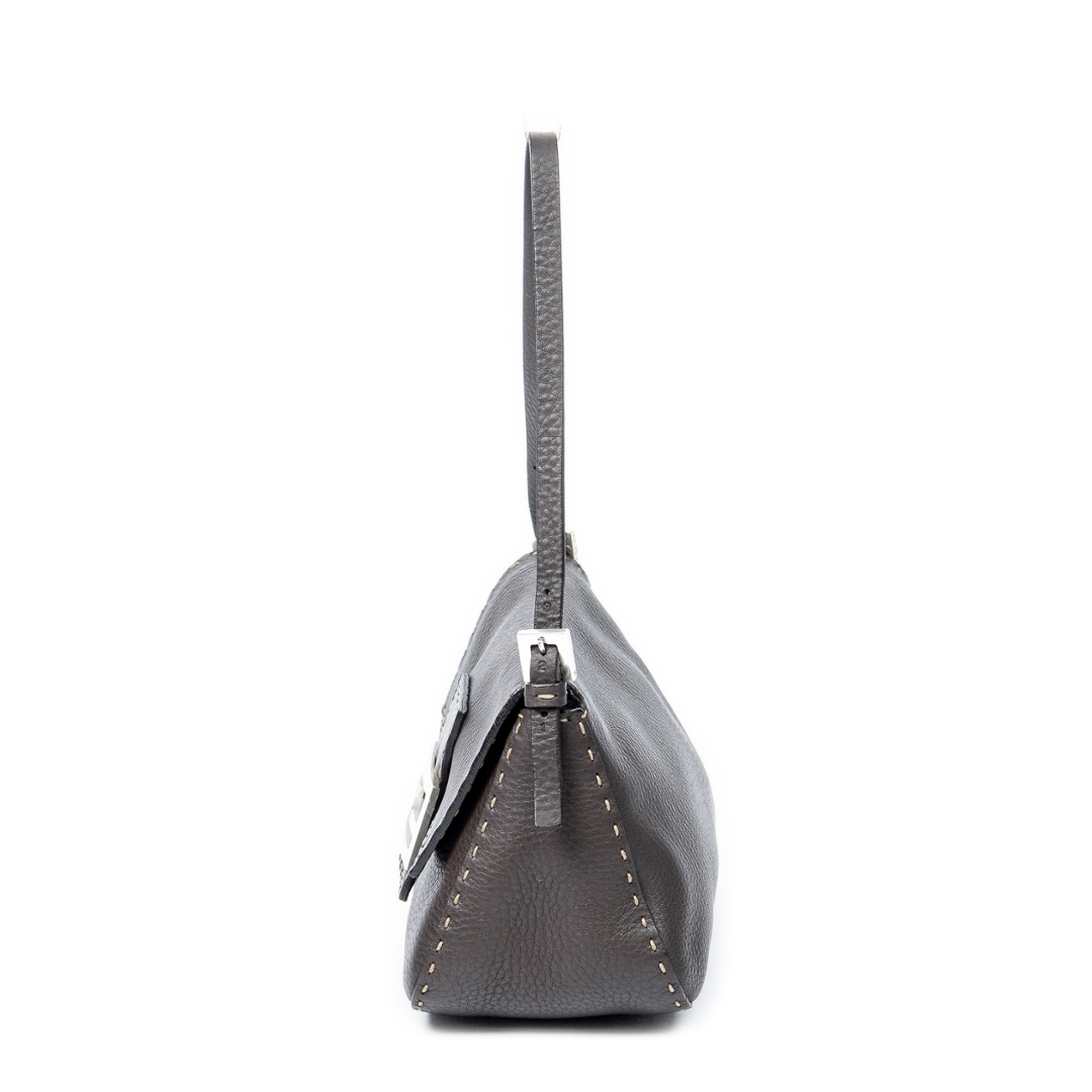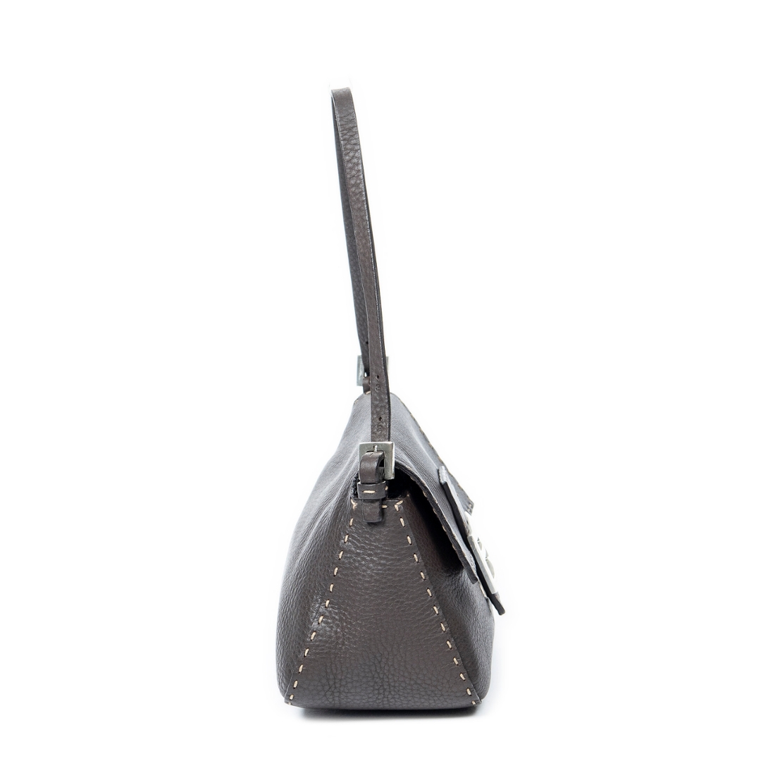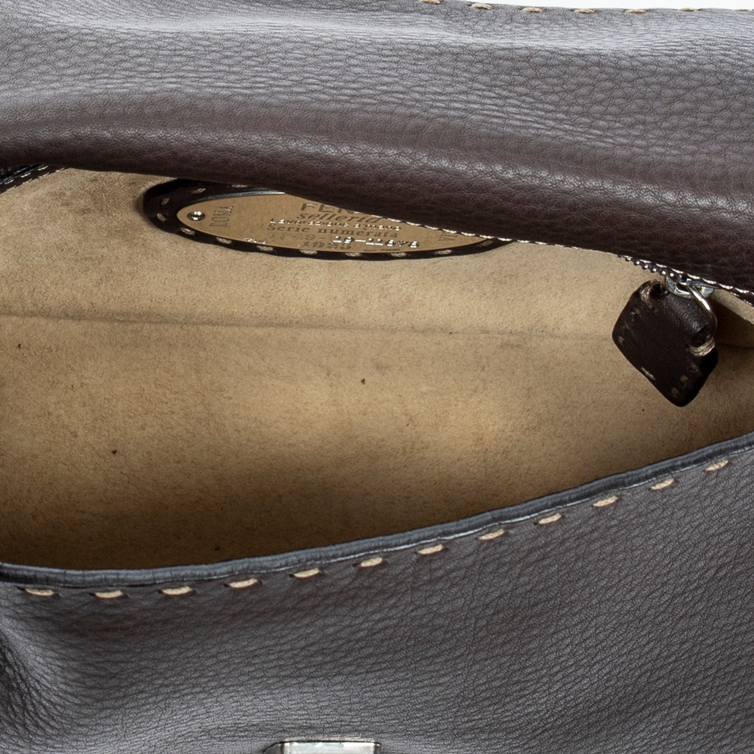 A vintage Fendi dark brown calf leather Mini Selleria Mama Baguette bag with a certificate of authenticity. Approximately 14cm height, 22cm width.