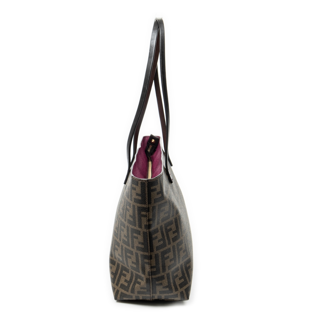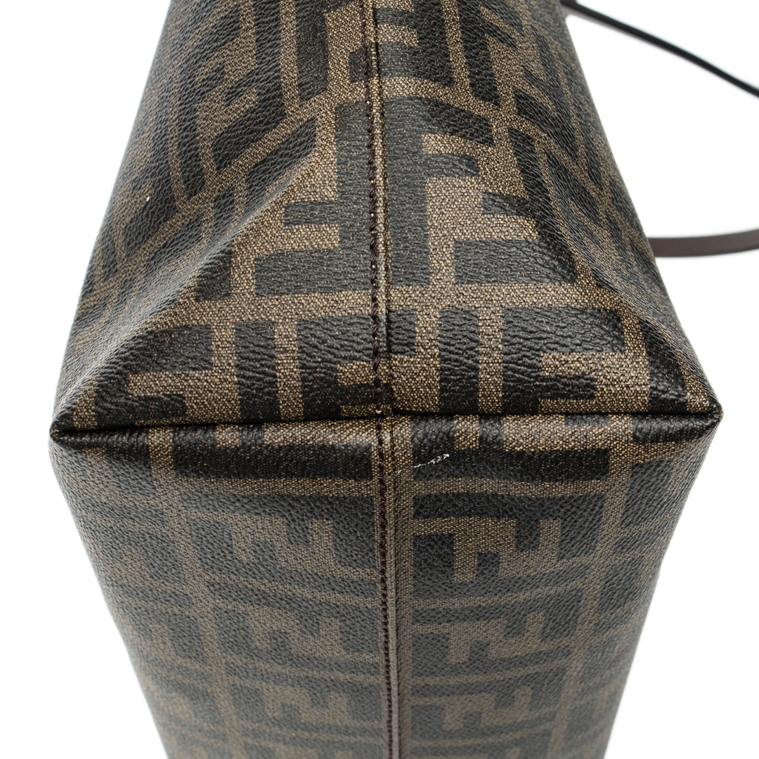A vintage Fendi tan/dark brown coated canvas Roll Zip Tote bag with a certificate of authenticity. Approximately 27cm height, 34cm width.