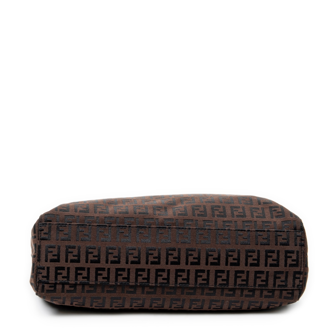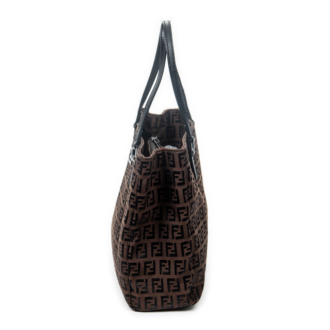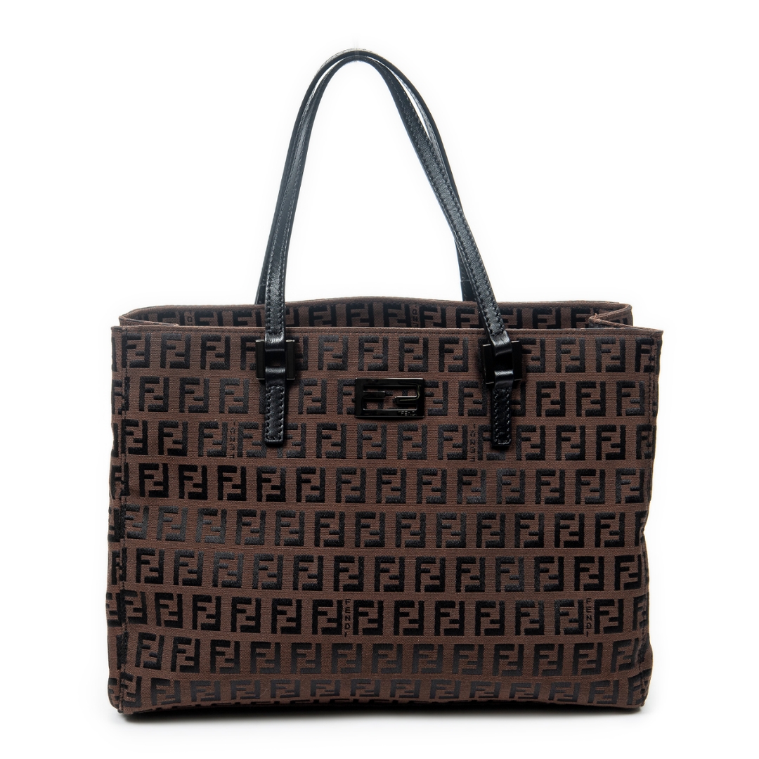 A vintage Fendi brown/black canvas Small Square Open Tote bag with a certificate of authenticity, Approximately 20cm height, 27cm width.