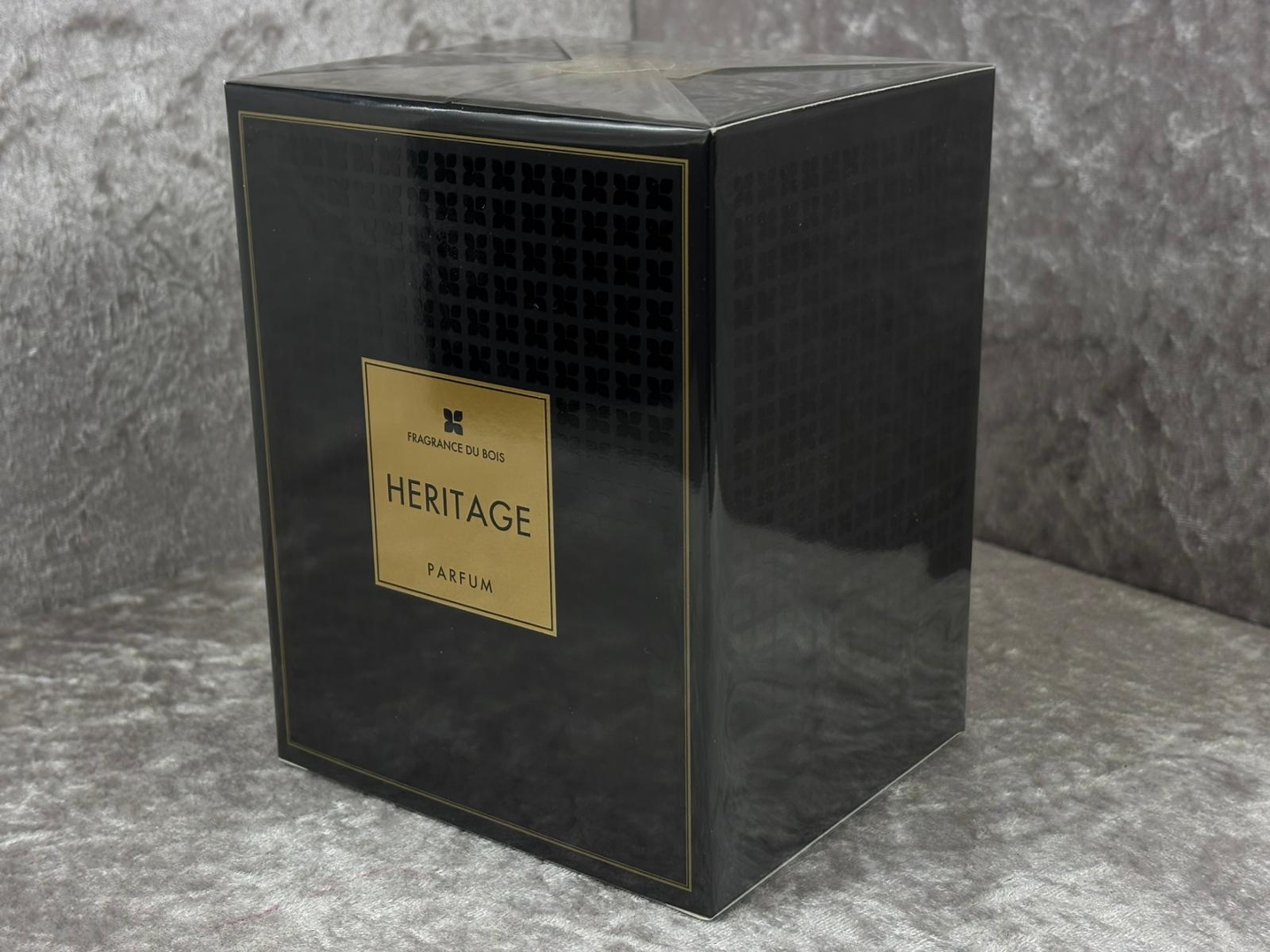 A 100ml bottle of Fragrance Du Bois Heritage Parfum, a rich and distinguished fragrance that reflects timeless craftsmanship and depth. It opens with a refined blend of fresh citrus and subtle spice, delivering a crisp yet commanding introduction that immediately conveys sophistication and balance.