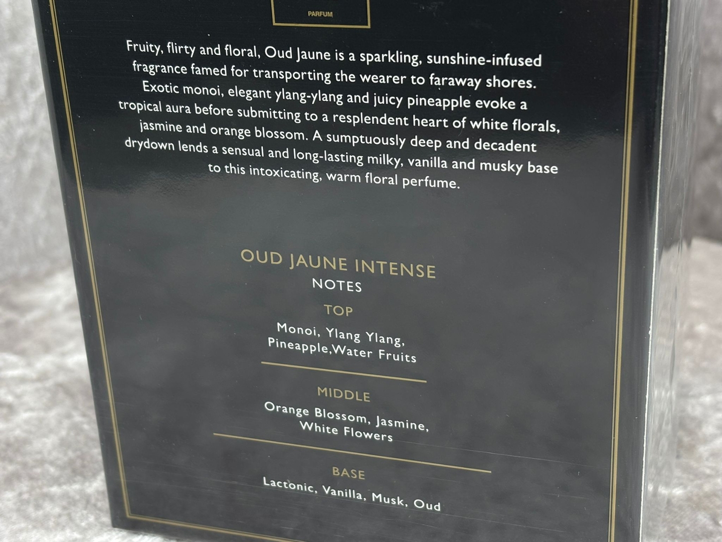 Presented in a striking 100ml bottle, this Parfum offers both intensity and longevity with a refined finish. Ideal for those seeking a bold yet versatile scent, Oud Jaune Intense stands as a standout addition to any fragrance collection, showcasing Fragrance Du Bois’ expertise in crafting opulent and memorable perfumes.