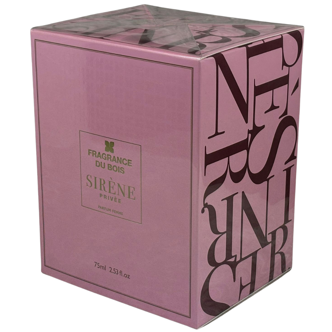 A 75ml bottle of Fragrance Du Bois Sirène Privée Parfum Femme, a luxurious and sensual fragrance crafted with a rich, feminine character. It opens with an enticing blend of sweet fruits and soft spice, creating an immediate sense of depth and allure that feels both elegant and captivating.