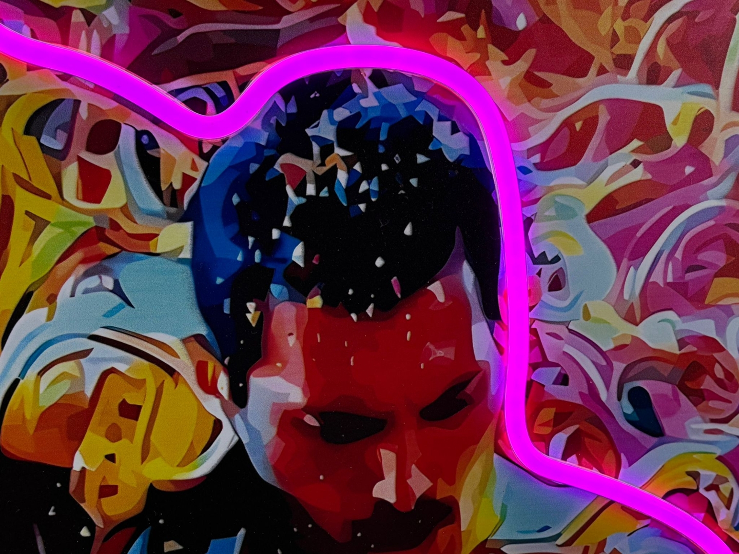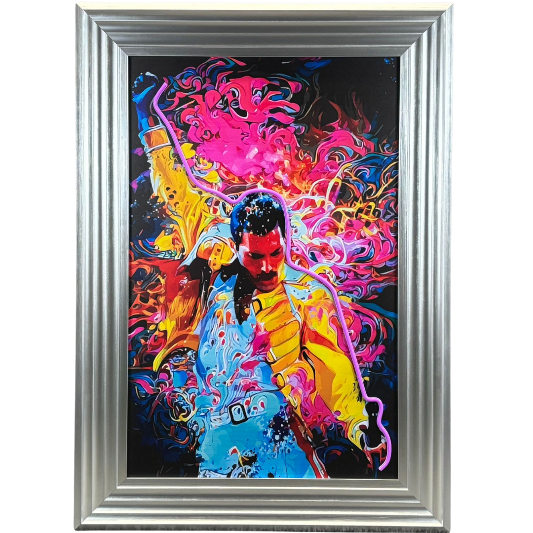 - > Framed LED Wall Art Picture of a Colourful Freddie Mercury