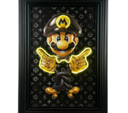 A brand new silver framed LED wall art picture of a Colourful Freddie Mercury. This picture features a power button at the bottom and a battery pack.