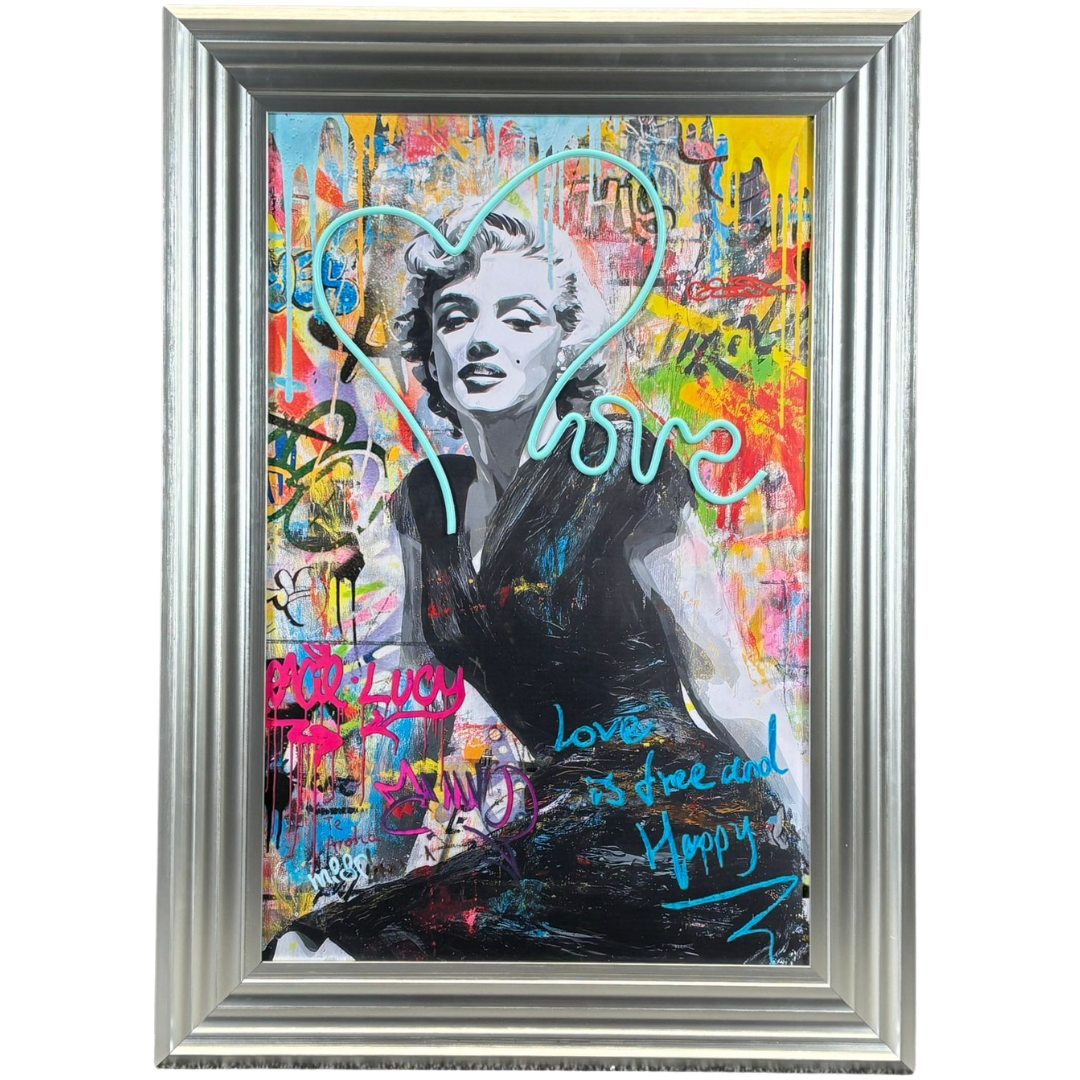 - > Framed LED Wall Art Picture of a Graffiti Marilyn Monroe - Love