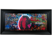 A brand new black framed LED wall art picture of a King Gorilla. This picture features a power button at the bottom and a battery pack.