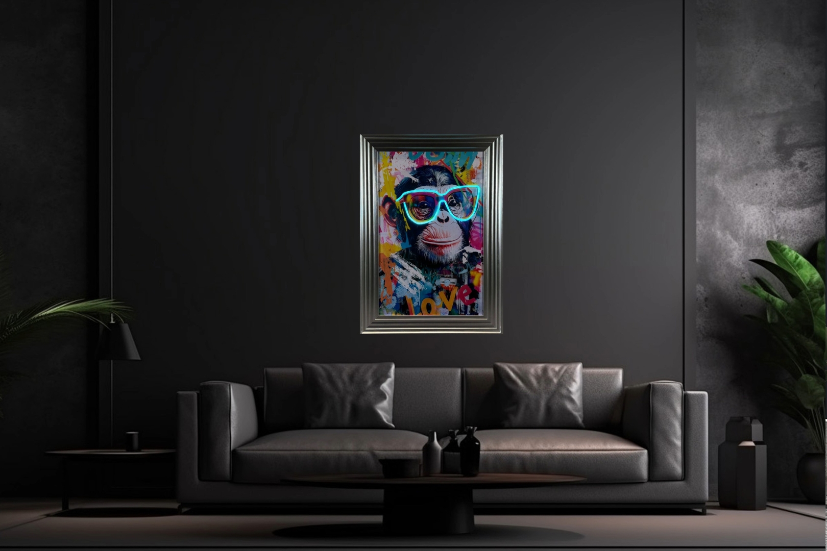 - > Framed LED Wall Art Picture of a Monkey in Glasses