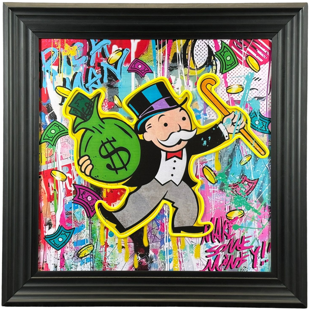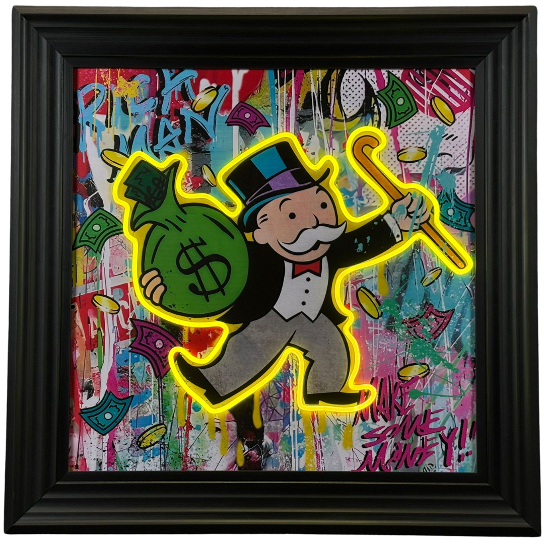 - > Framed LED Wall Art Picture of The Monopoly Man Carrying his Money