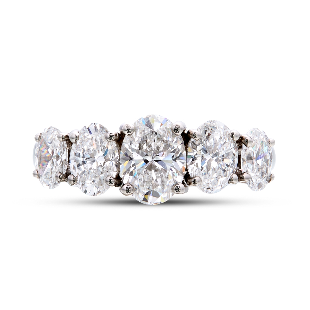 A brand-new, unused, GIA-certified natural diamond five-stone cluster ring, set with five oval-cut diamonds, set in platinum.