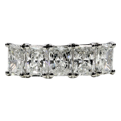 A brand-new, unused, GIA-certified natural diamond five-stone eternity ring, with five radiant-cut diamonds, set in platinum.
