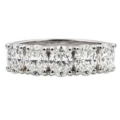 A brand-new, unused GIA-certified natural diamond five-stone eternity ring, with five oval-cut diamonds, set in platinum.