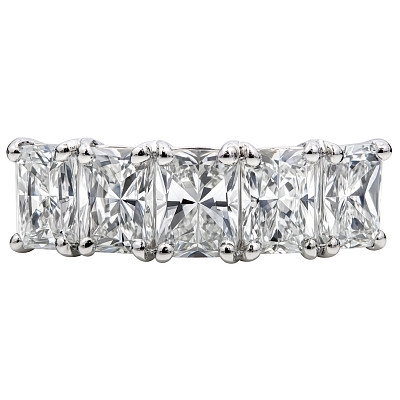 A brand-new, unused GIA-certified natural diamond five-stone eternity ring, with five radiant-cut diamonds, set in platinum.