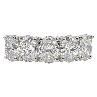 A brand-new, unused, GIA-certified platinum natural diamond five-stone eternity ring, set with five oval-cut diamonds.