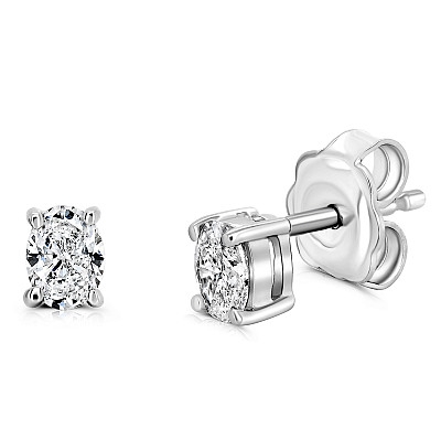 A brand-new, unused pair of natural diamond oval-cut solitaire earrings offering refined brilliance and timeless versatility, set with two beautifully matched oval-cut diamonds with a combined weight of 0.80ct. Each diamond is GIA-certified and graded E for colour with SI1 clarity, presenting an exceptionally bright, white appearance with lively sparkle and elegant elongation. The oval cut enhances surface presence while maintaining a soft, sophisticated profile that flatters the ear and performs beautifully in both natural and artificial light.