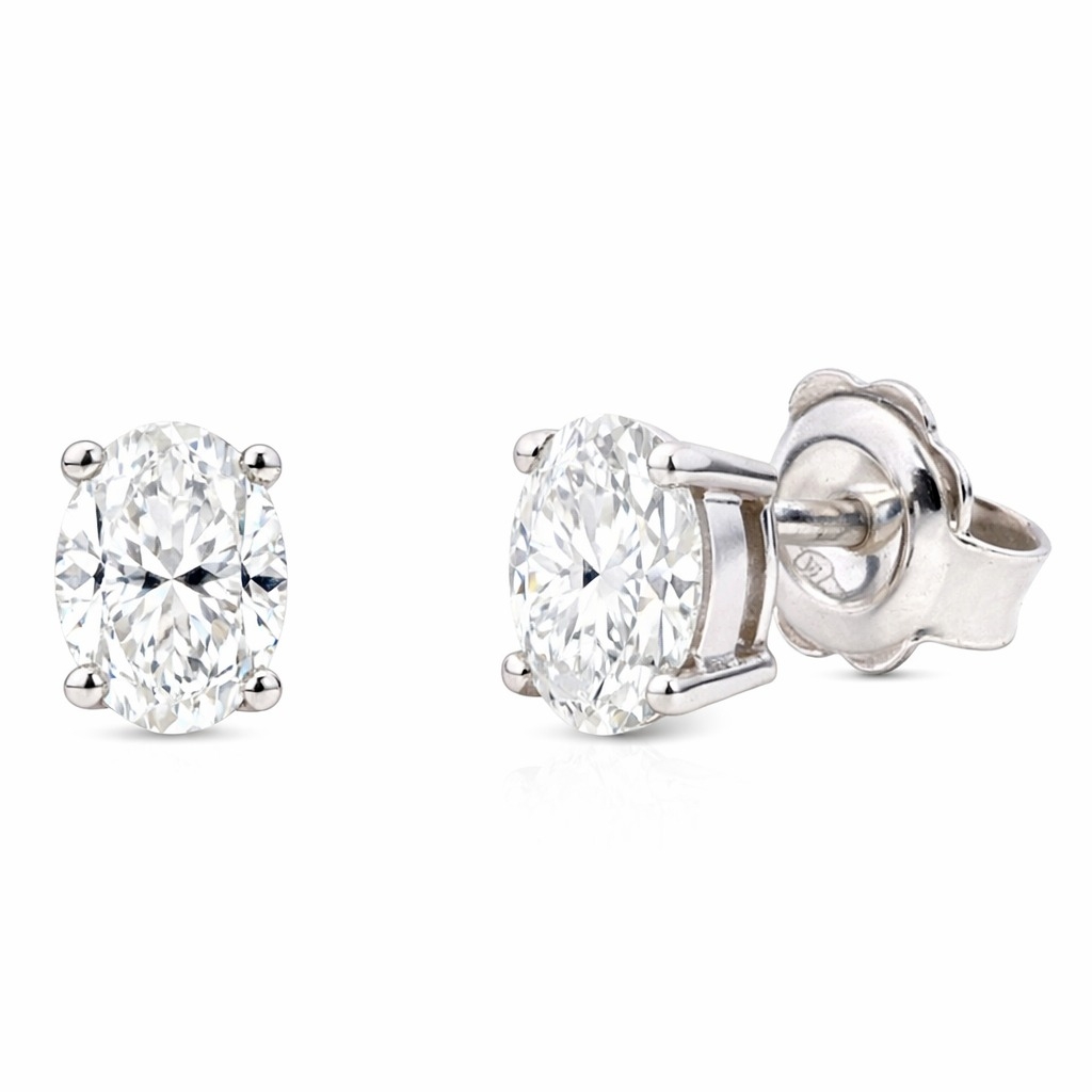 - > GIA Natural Diamond Oval Cut Solitaire Earrings 1.03ct