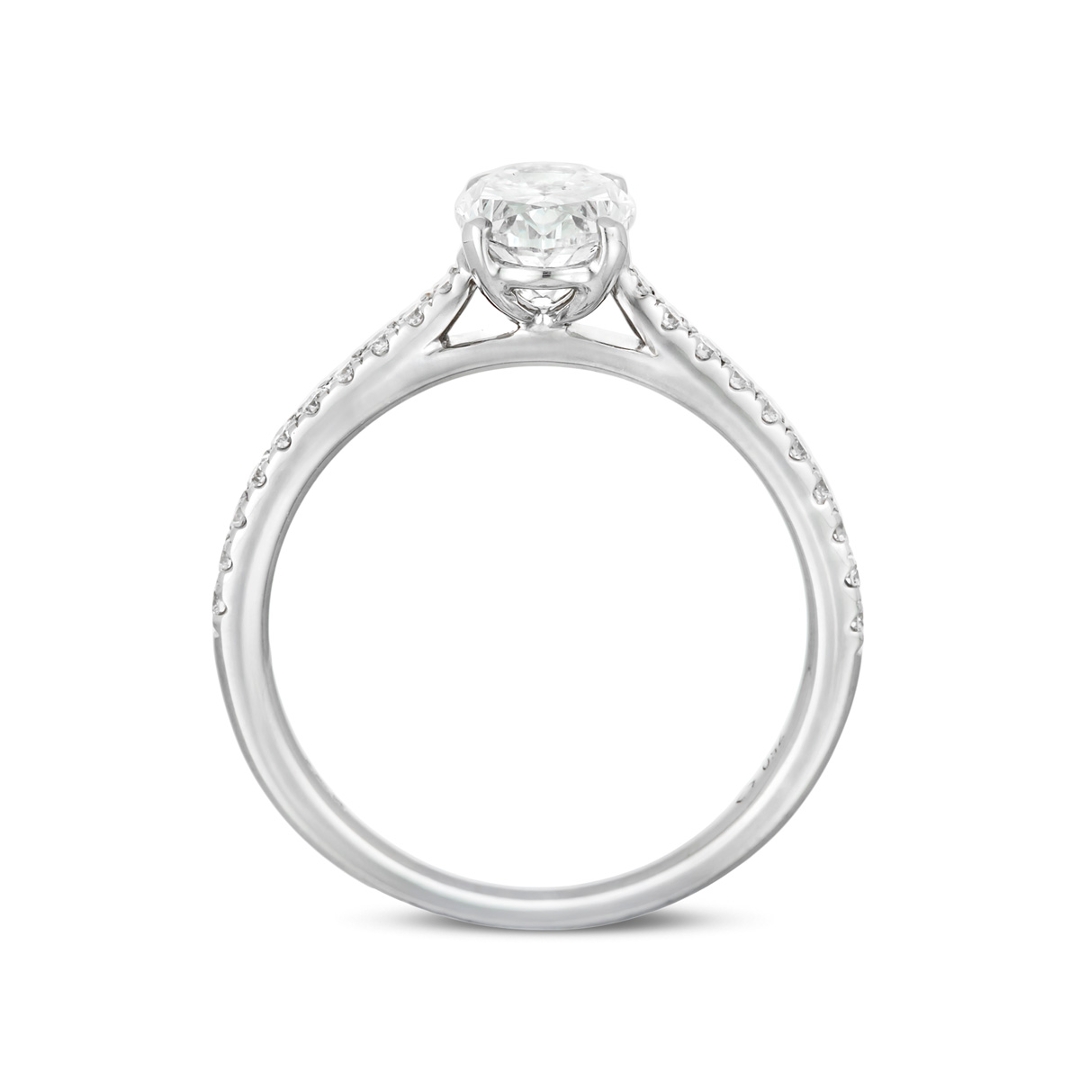 The 18ct white gold setting offers a sleek, contemporary finish, perfectly suited to the elongated shape of the oval-cut diamond, creating a flattering, elegant silhouette on the hand. With a total weight of 2.75g, the ring is lightweight yet well-crafted, designed for both comfort and durability while maintaining a timeless aesthetic.