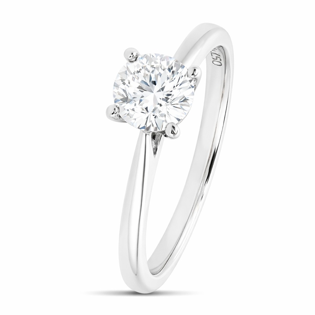 The 18ct white gold setting is meticulously crafted to enhance the diamond's natural beauty. White gold is renowned for its elegance and timeless appeal, offering a modern, sophisticated look that complements the dazzling diamond. The ring's polished finish enhances its sleek, luxurious appearance, making it an ideal choice for symbolising enduring love and commitment.