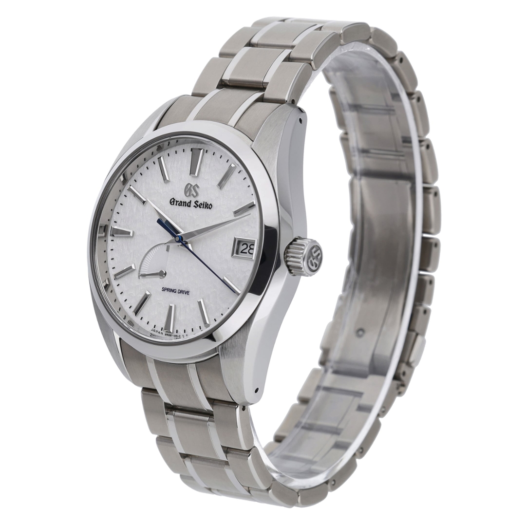 A Grand Seiko Heritage Collection Snowflake is crafted in lightweight high-intensity titanium, paired with the brand’s iconic white textured dial inspired by freshly fallen snow in Shinshu. The 41mm case offers exceptional comfort on the wrist, while the crisp applied indices, razor-sharp hands, and subtle power reserve indicator at 8 o’clock highlight Grand Seiko’s meticulous approach to legibility and balance.