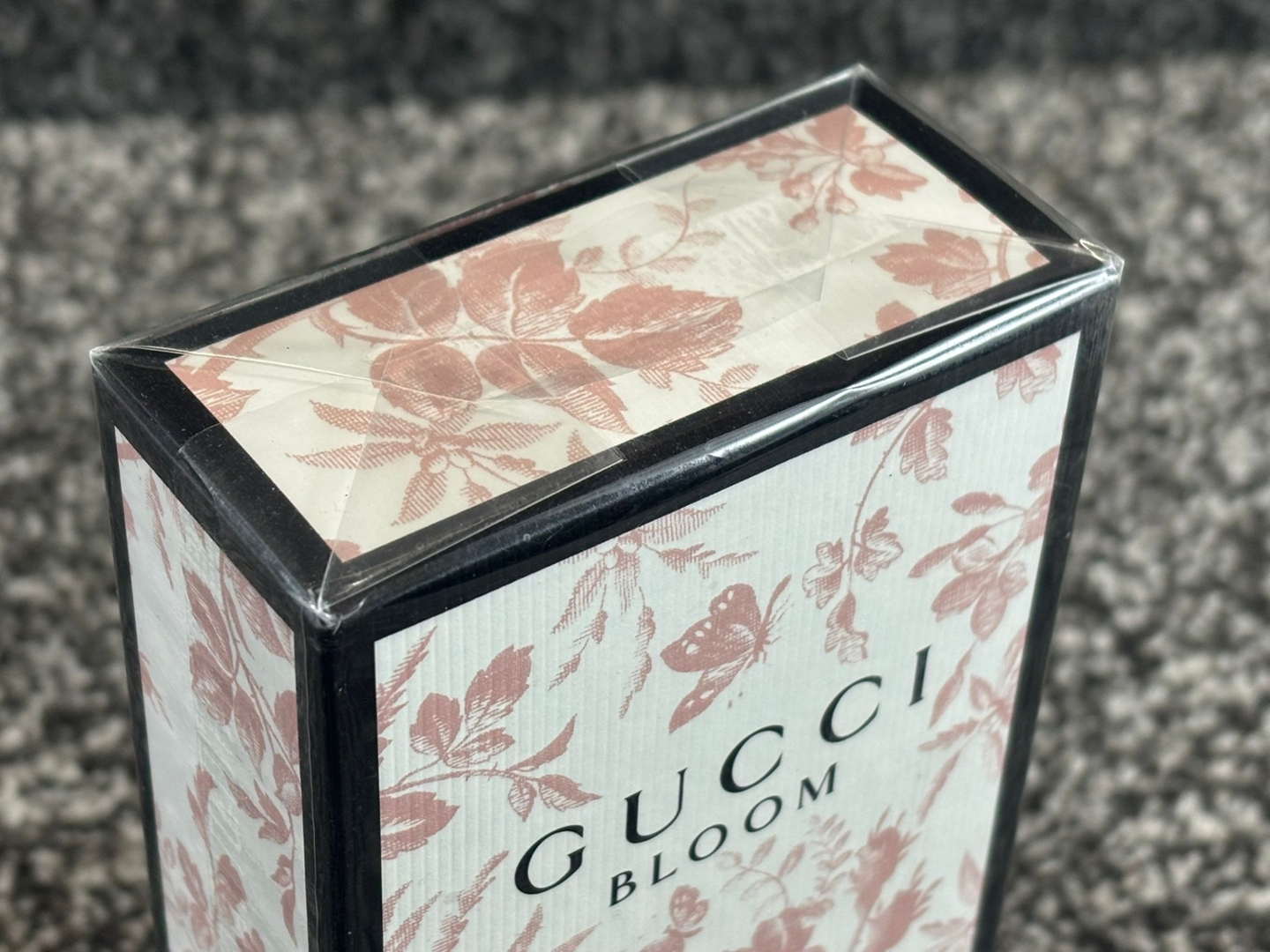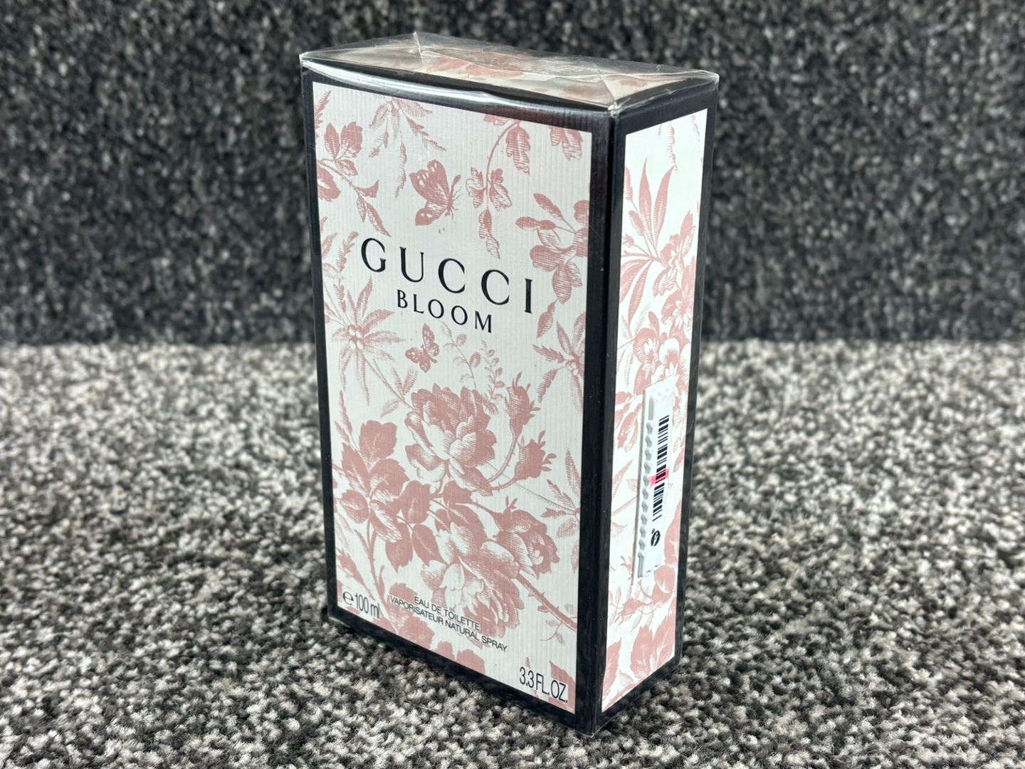A 100ml bottle of Gucci Bloom Eau de Toilette, presented in its