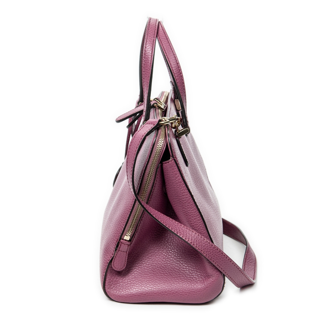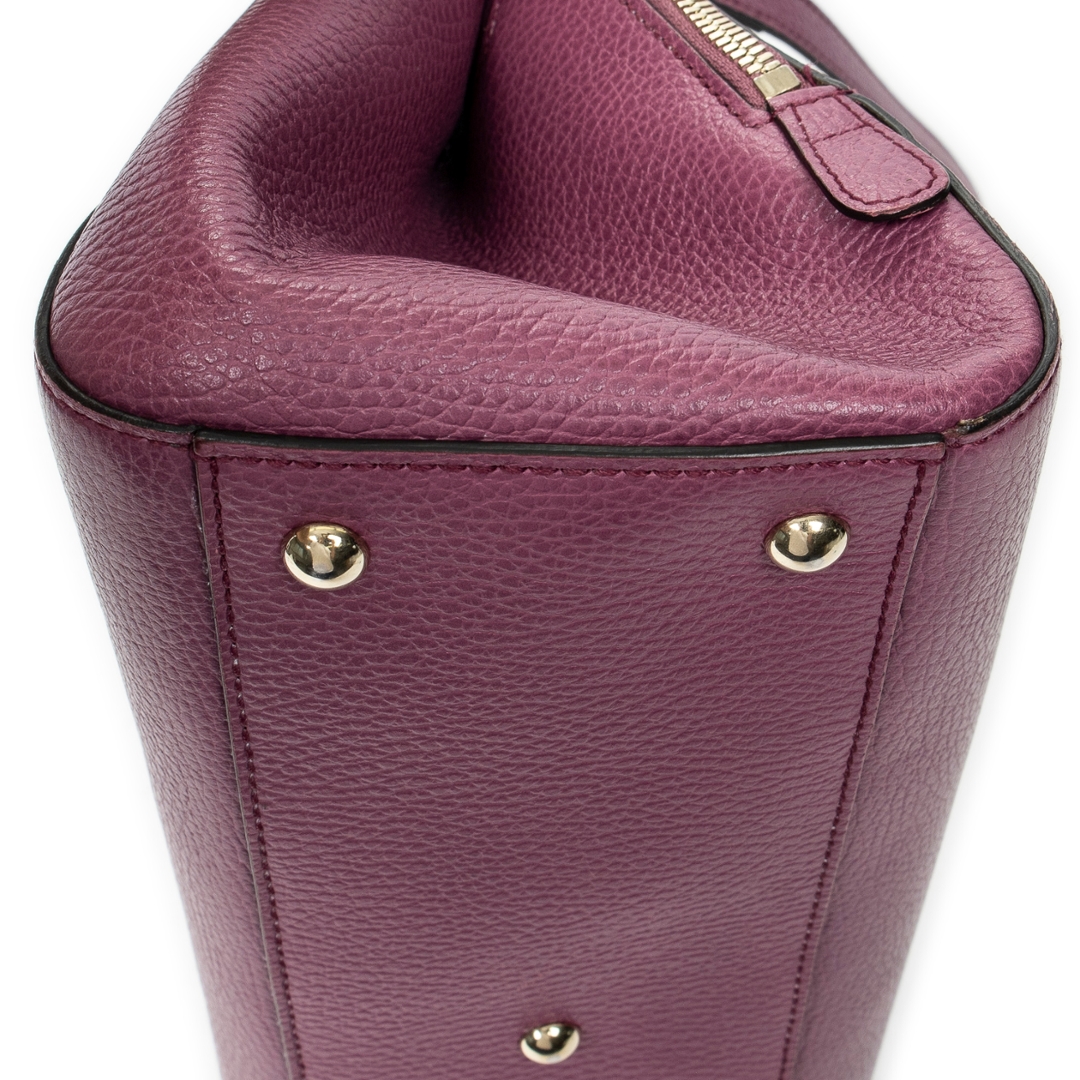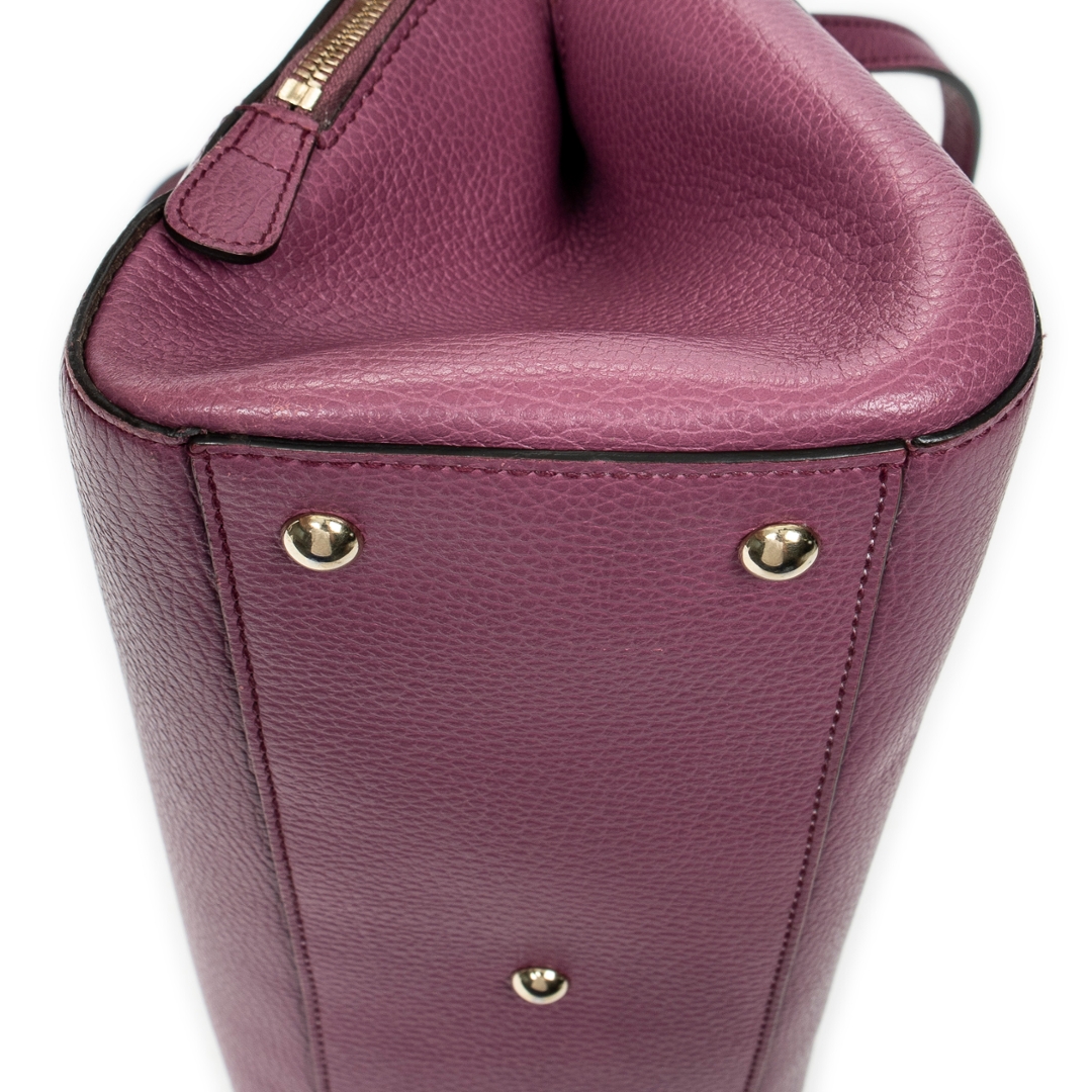 A vintage Gucci purple calf leather 2-Way Top Handle bag with a certificate of authenticity. Approximately 21cm height, 31cm width.