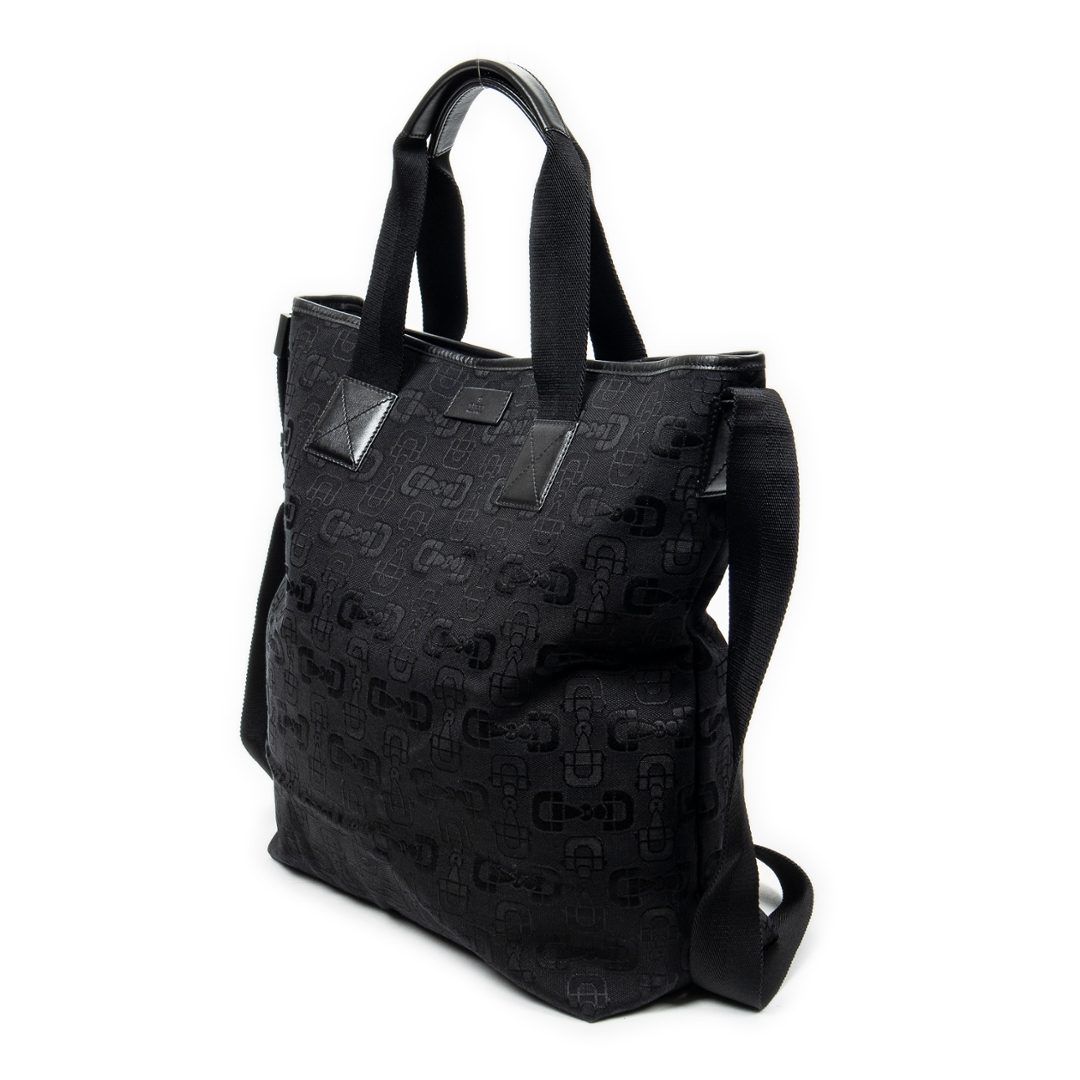 A vintage Gucci black canvas 2-Way Tote bag with a certificate of authenticity, Approximately 37cm height, 40cm width.