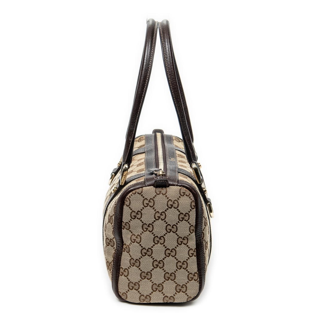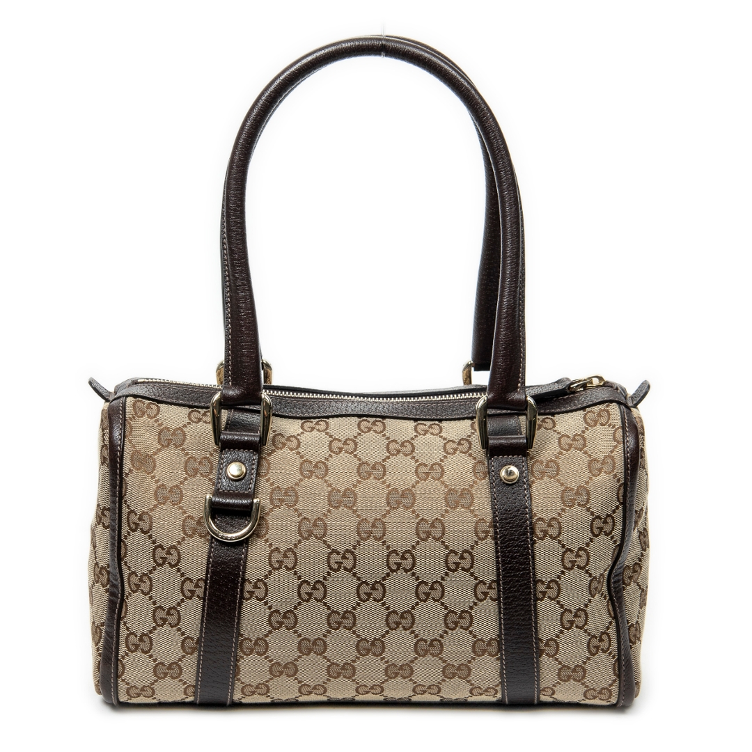 A vintage Gucci beige/brown canvas Abbey Boston bag with a certificate of authenticity. Approximately 17cm height, 28cm width.
