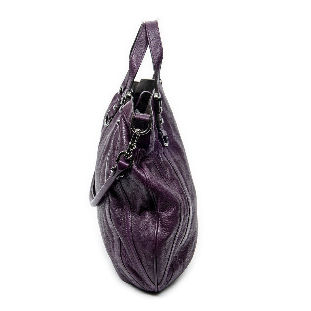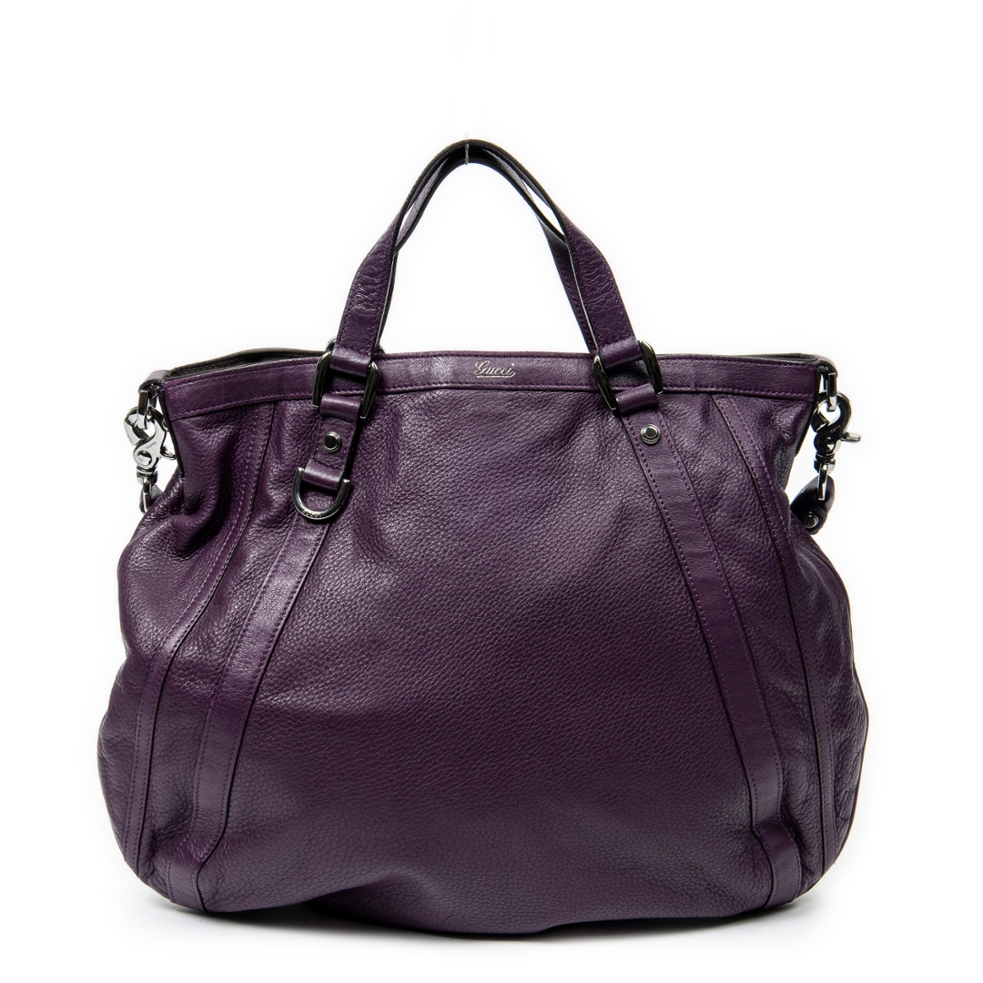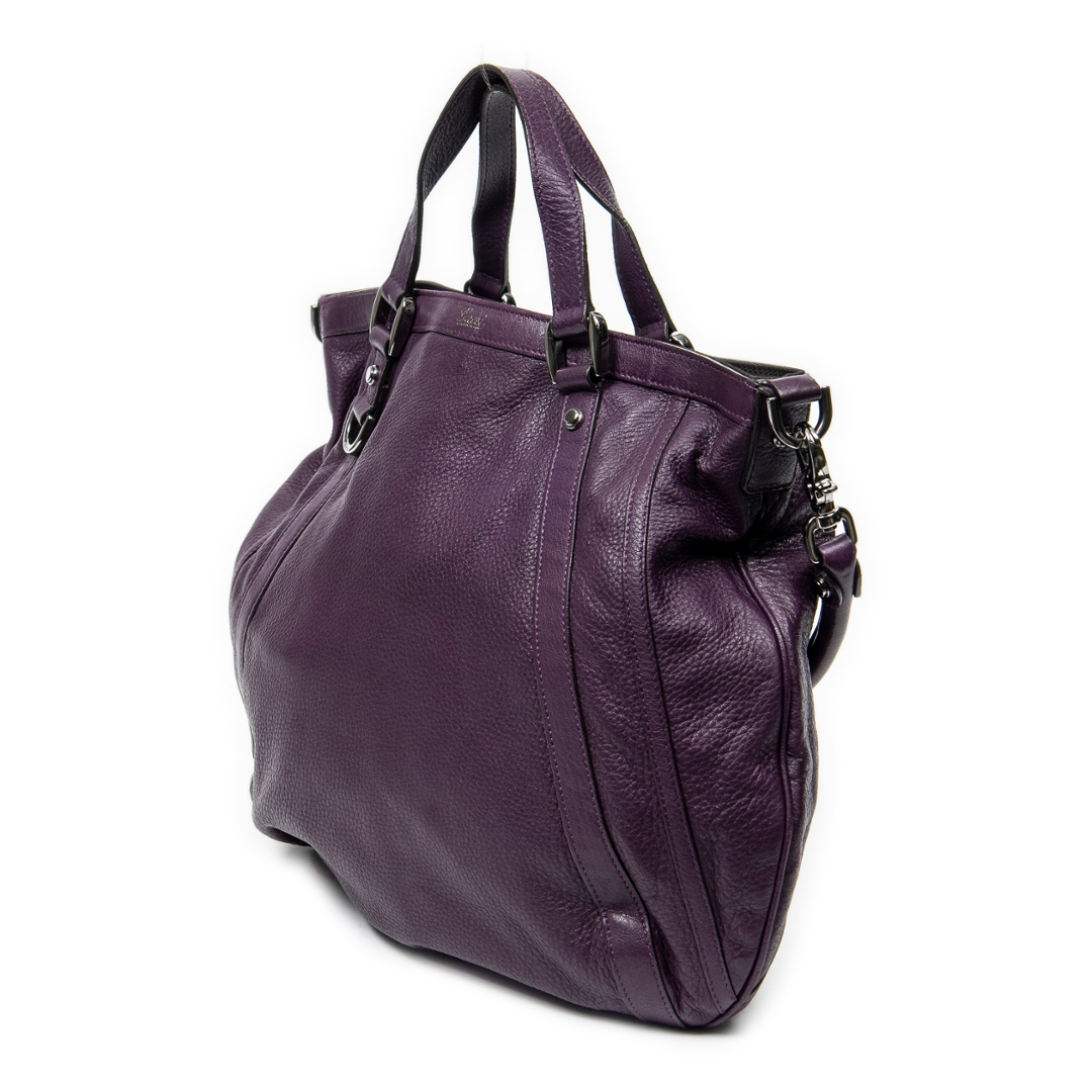 A vintage Gucci purple calf leather Abbey Convertible Tote bag with a certificate of authenticity. Approximately 35cm height,43 cm width.
