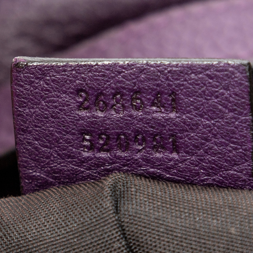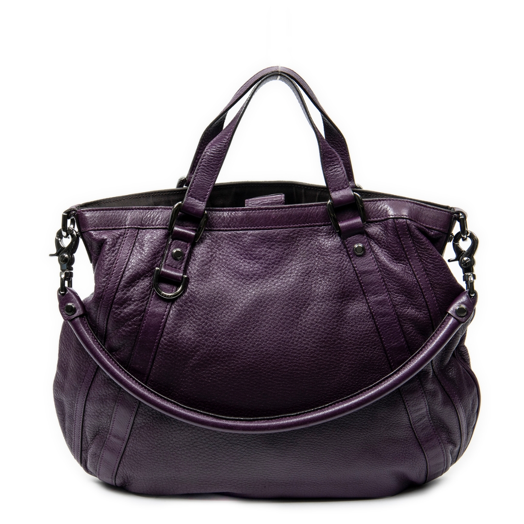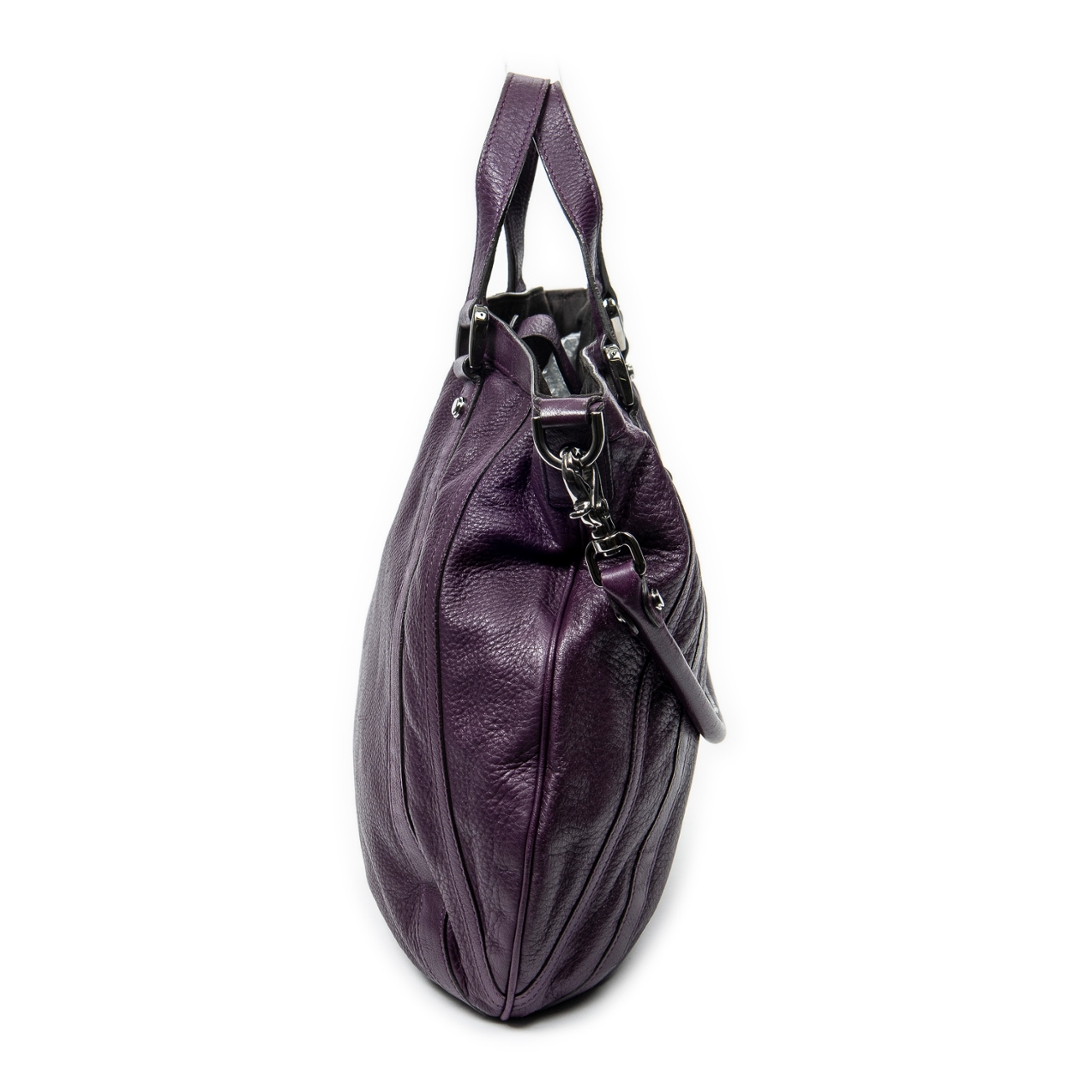 A vintage Gucci purple calf leather Abbey Convertible Tote bag with a certificate of authenticity. Approximately 35cm height,43 cm width.