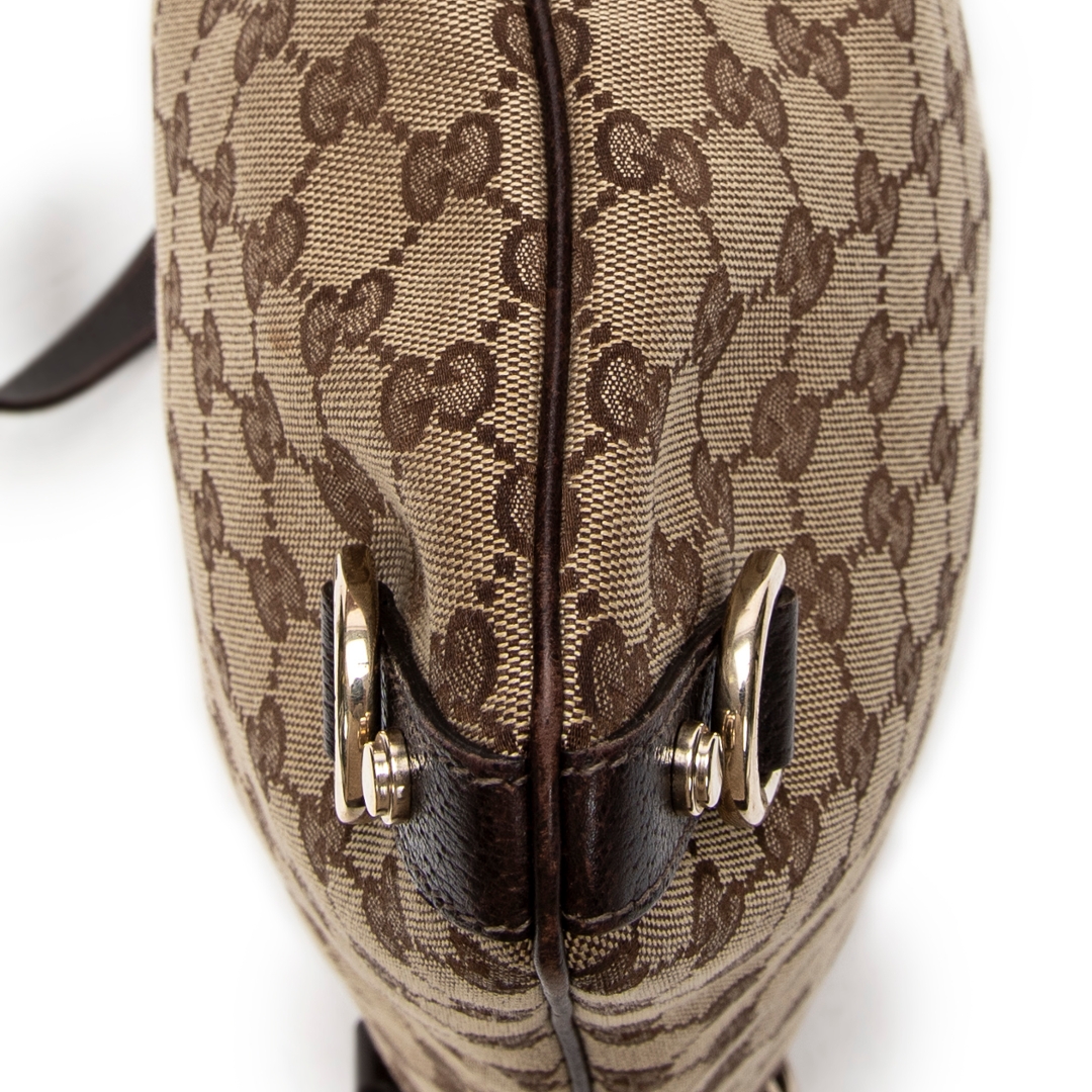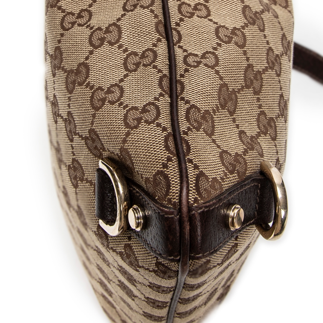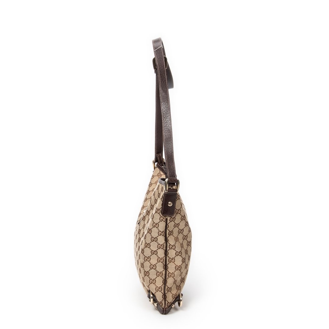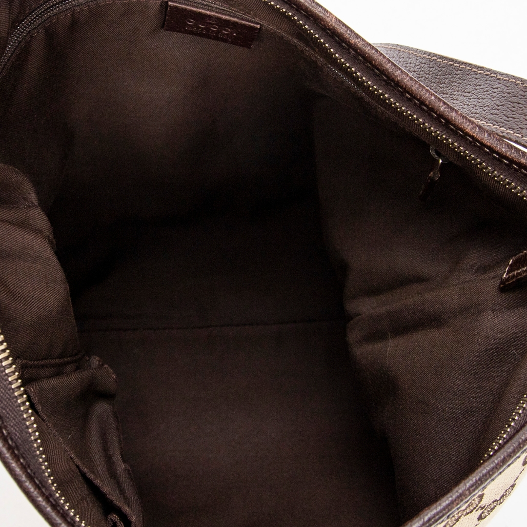A vintage Gucci beige/brown canvas Abbey Crossbody bag with a certificate of authenticity, Approximately 30cm height, 30cm width.