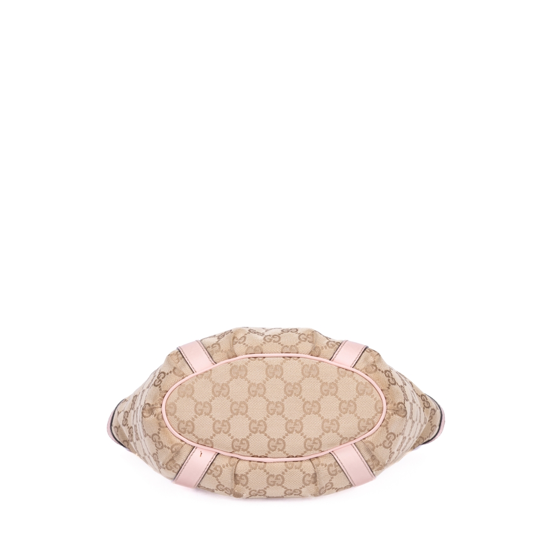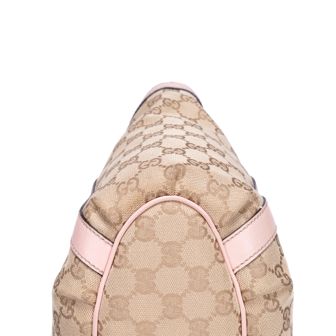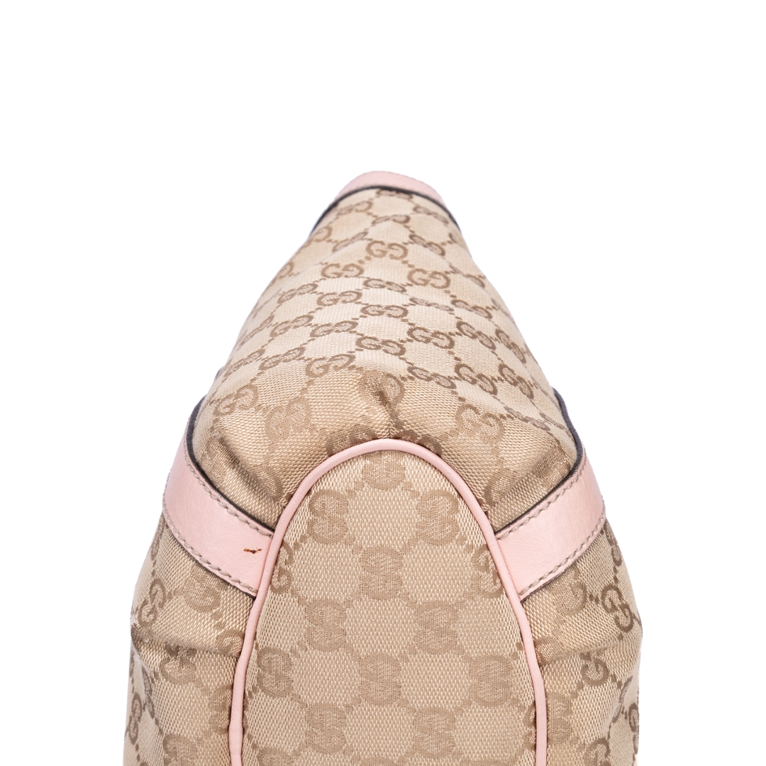 A vintage Gucci beige/pink canvas Abbey D-Ring Tote bag with a certificate of authenticity, Approximately 25cm height, 20cm width.