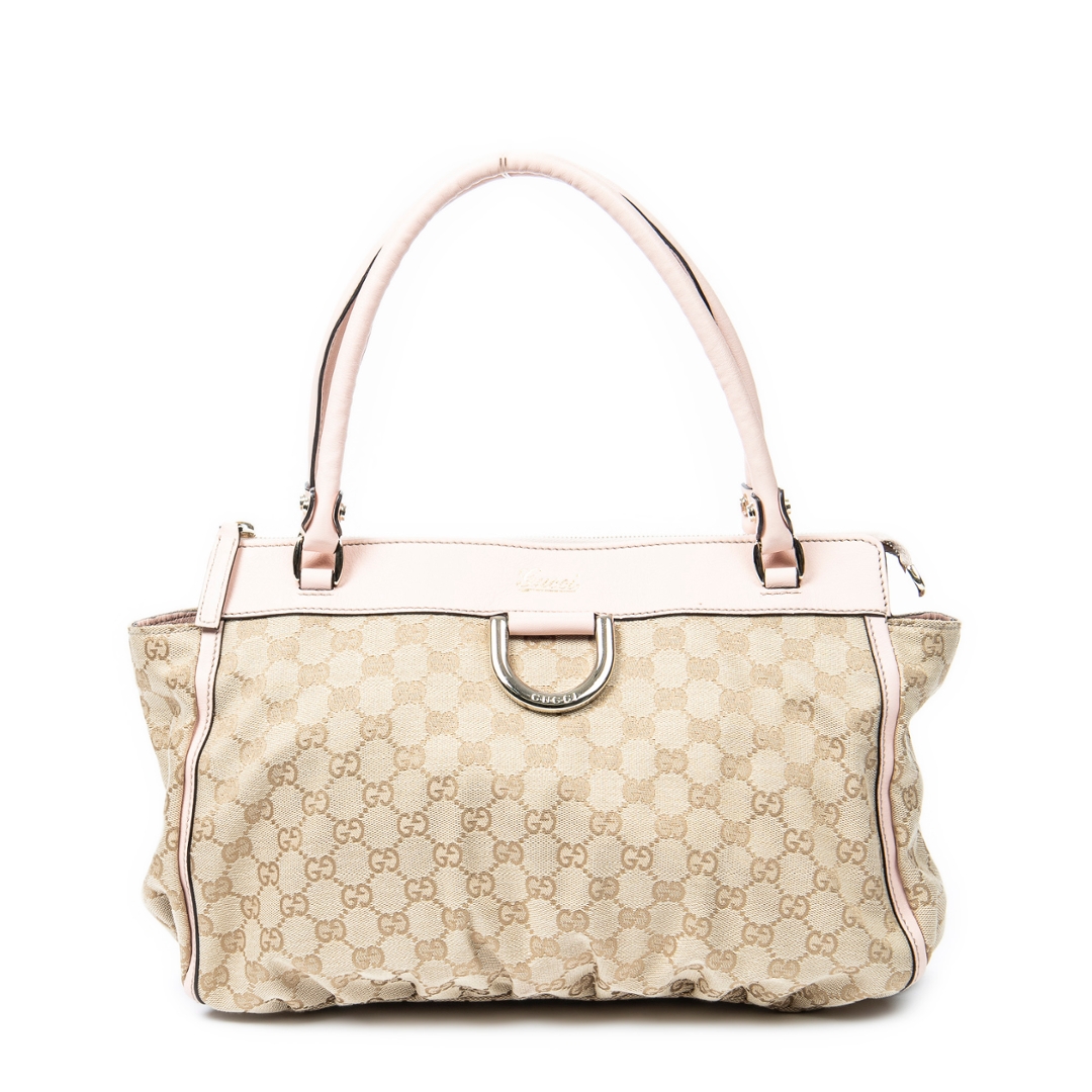 A vintage Gucci ponk/beige canvas Abbey D-Ring Zip Tote bag with a certificate of authenticity. Approximately 25cm height, 33cm width.