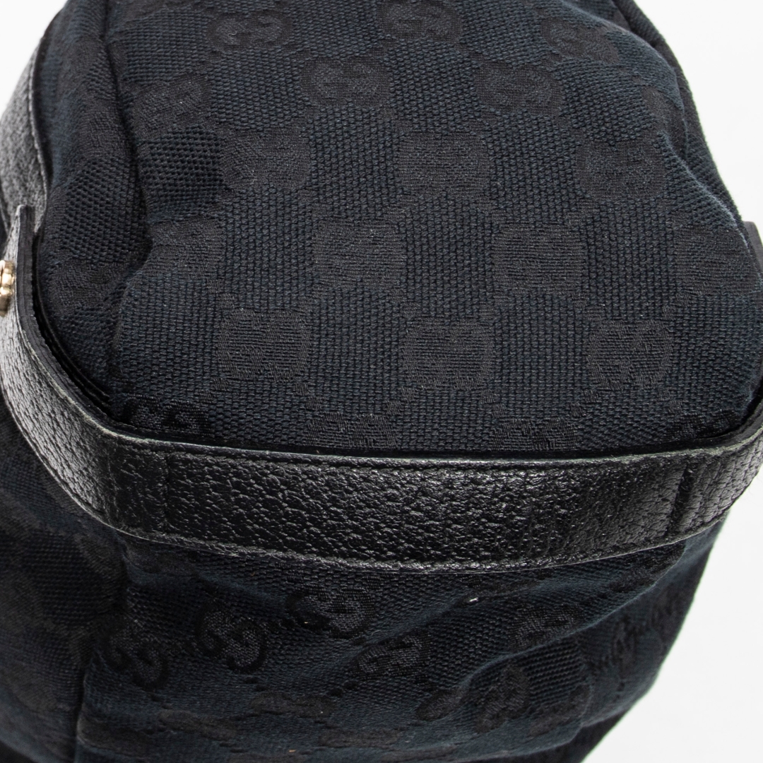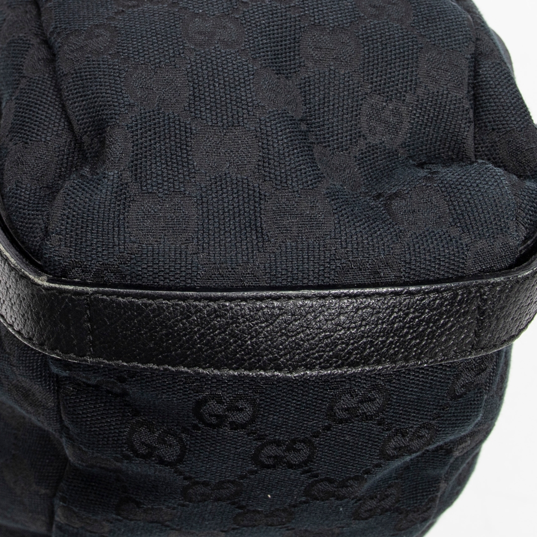 A vintage Gucci black canvas Abbey Hobo Diagonal bag with a certificate of authenticity, Approximately 24cm height, 41cm width.