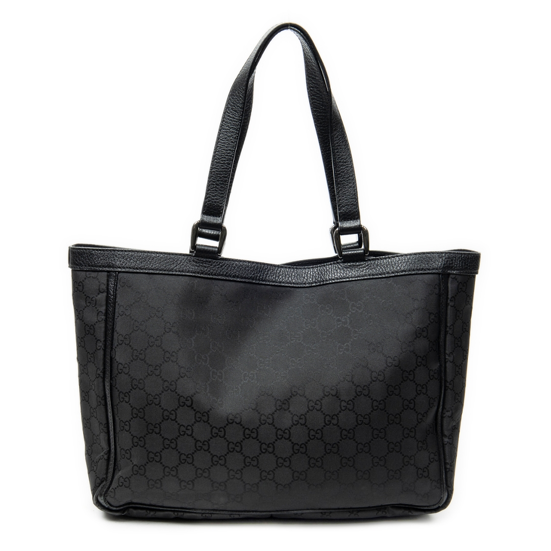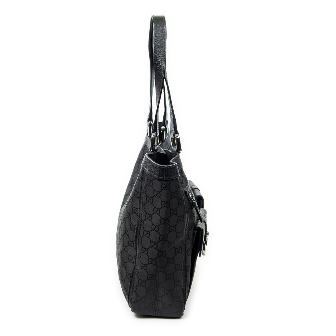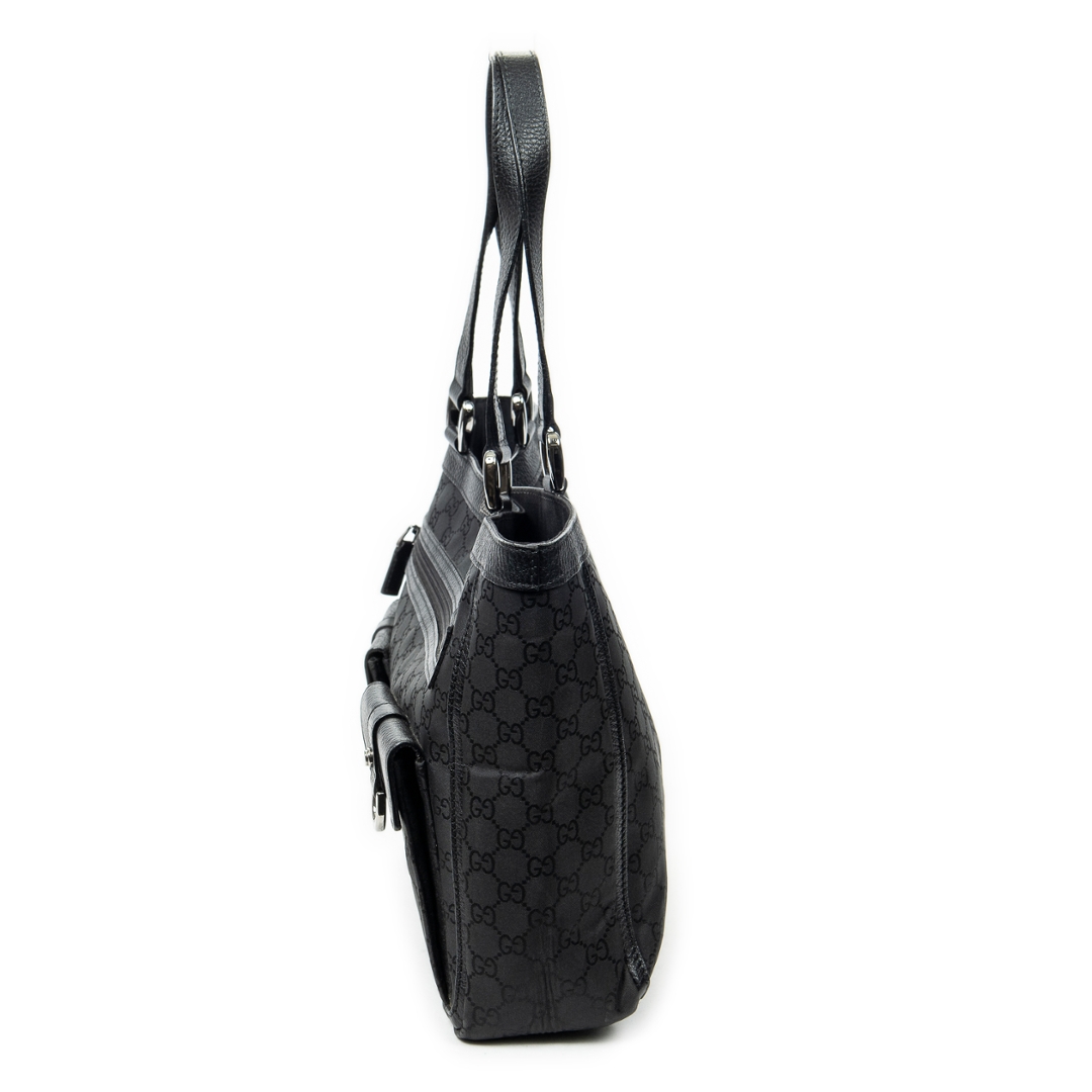A vintage Gucci black canvas Abbey Pocket Tote bag with a certificate of authenticity. Approximately 25cm height, 33cm width.