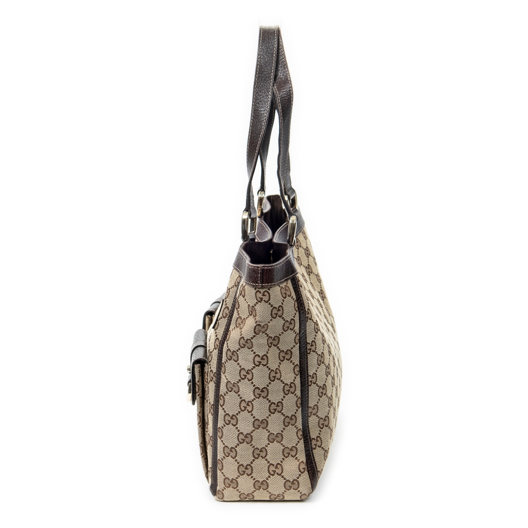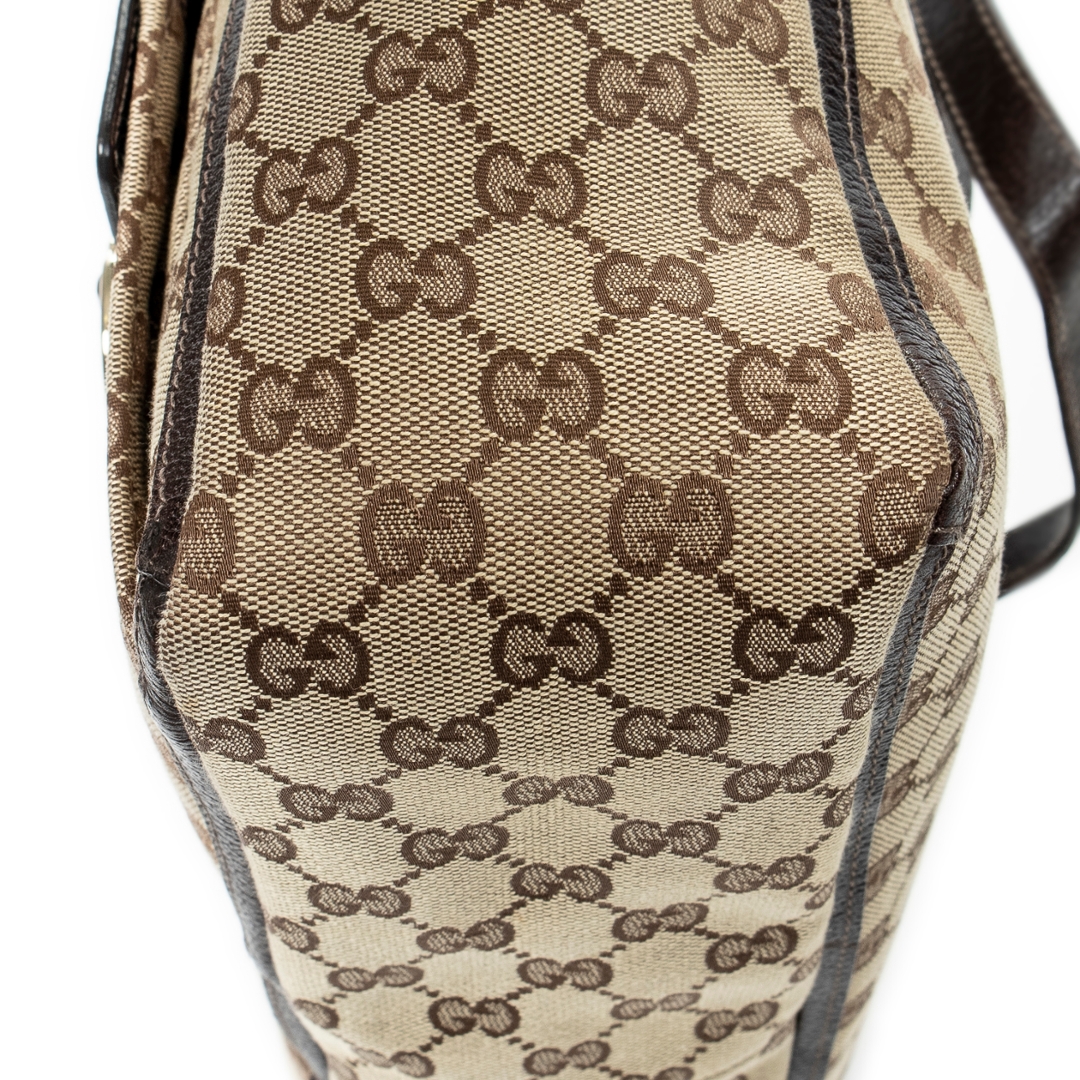 A vintage Gucci beige/dark brown canvas Abbey Tote bag with a certificate of authenticity. Approximately 25cm height, 33cm width.