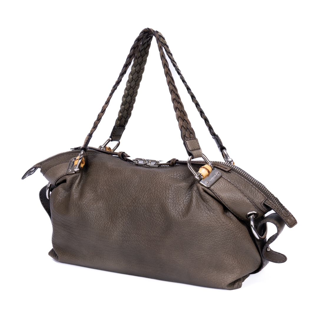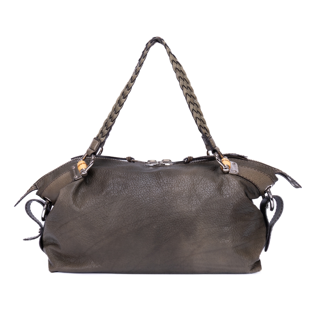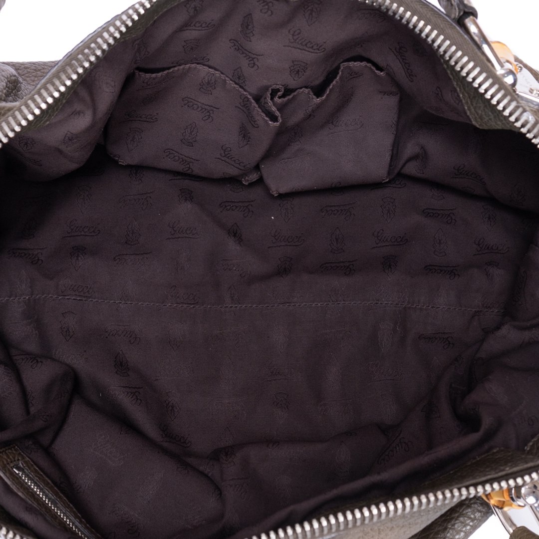 A vintage Gucci khaki green calf leather Bamboo Bar bag with a certificate of authenticity, Approximately 22cm height, 49cm width.