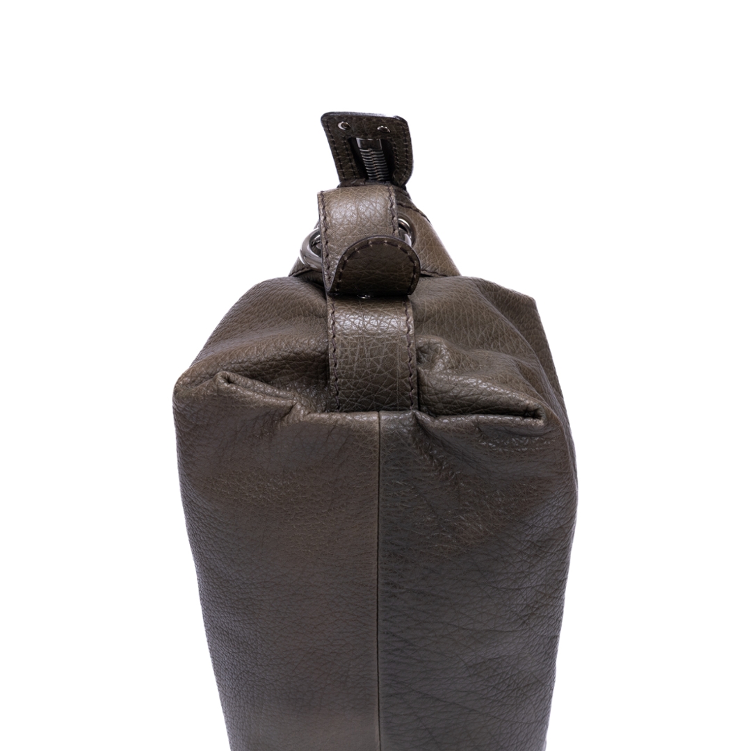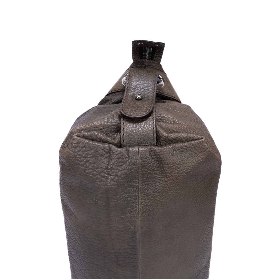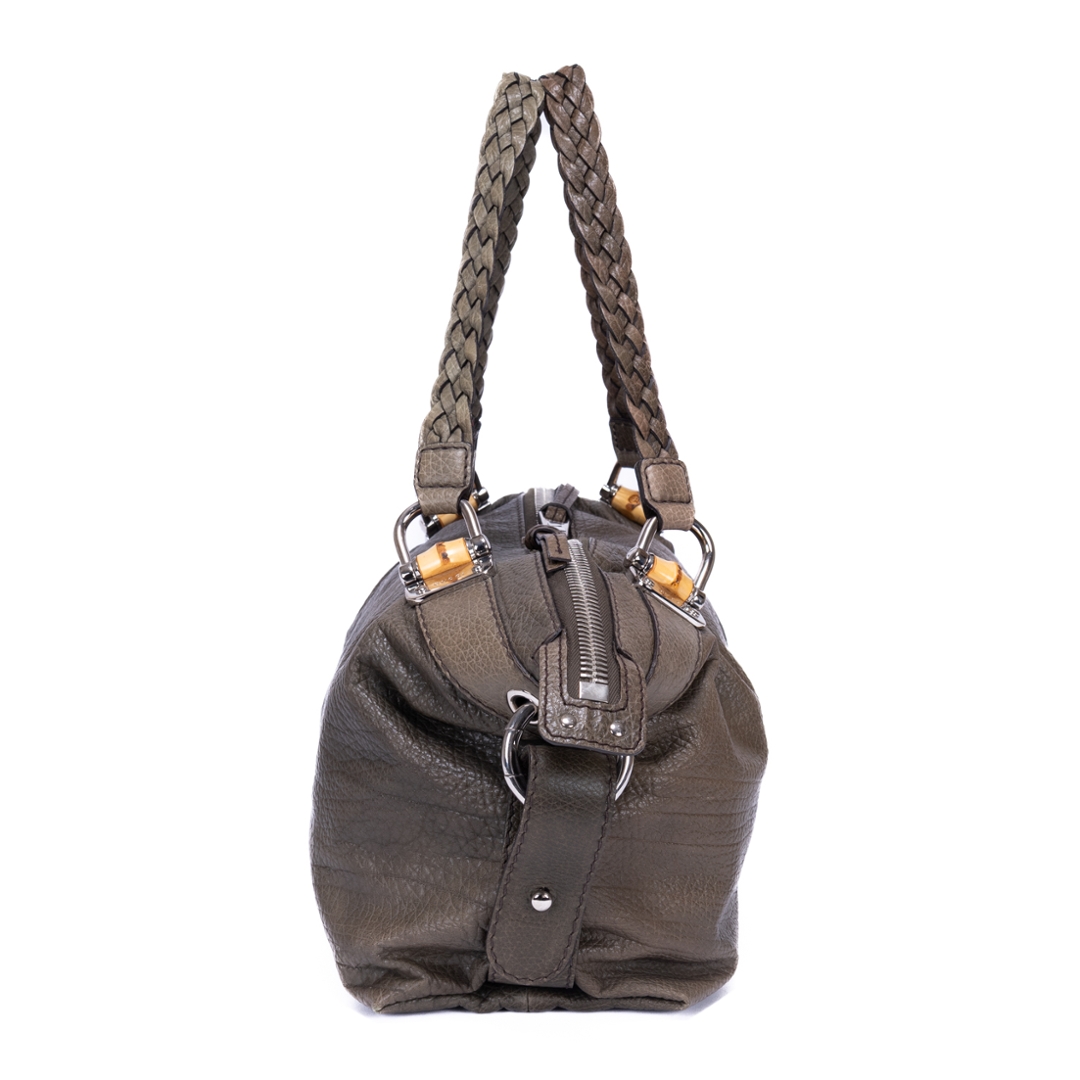 A vintage Gucci khaki green calf leather Bamboo Bar bag with a certificate of authenticity, Approximately 22cm height, 49cm width.