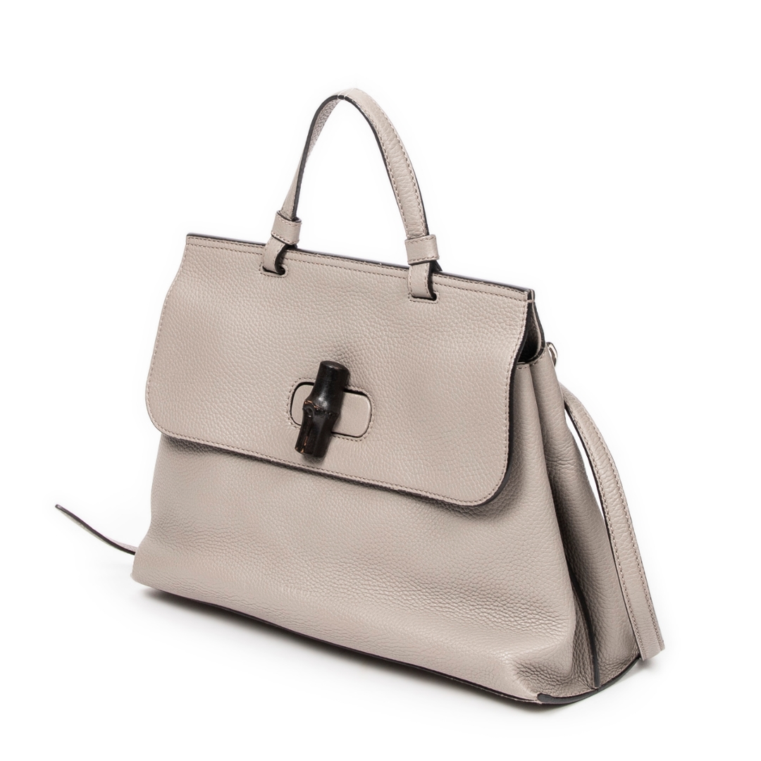 A vintage Gucci grey calf leather Bamboo Daily Top Handle bag with a certificate of authenticity, Approximately 24cm height, 33cm width.