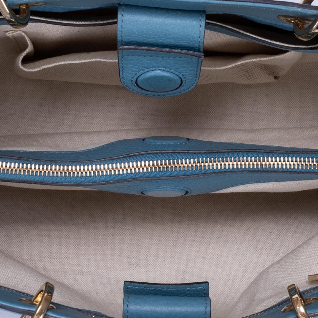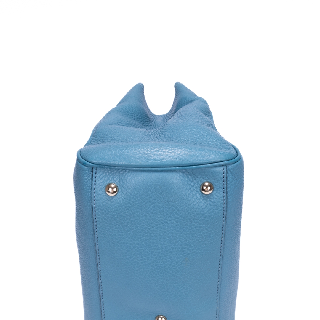 A vintage Gucci blue calf leather Bamboo Tote bag, crafted from finely grained leather in a soft, elegant tone. The structured silhouette is elevated by the house’s iconic curved bamboo handles, a signature detail that reflects Gucci’s heritage craftsmanship. Finished with subtle gold-tone branding to the front, the design remains clean, refined, and effortlessly timeless.