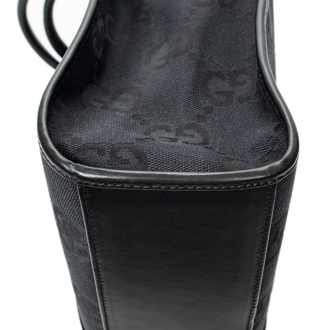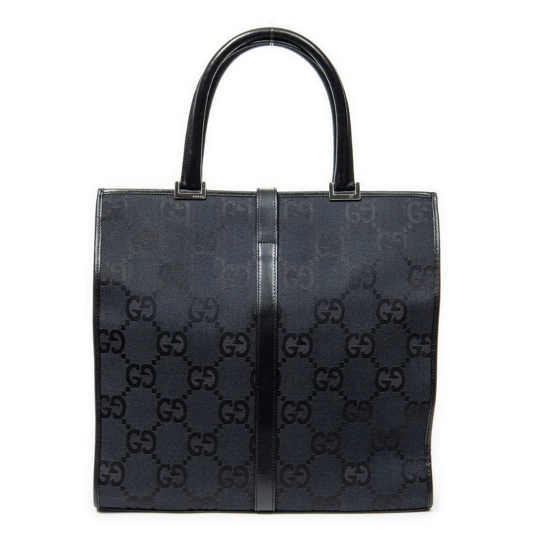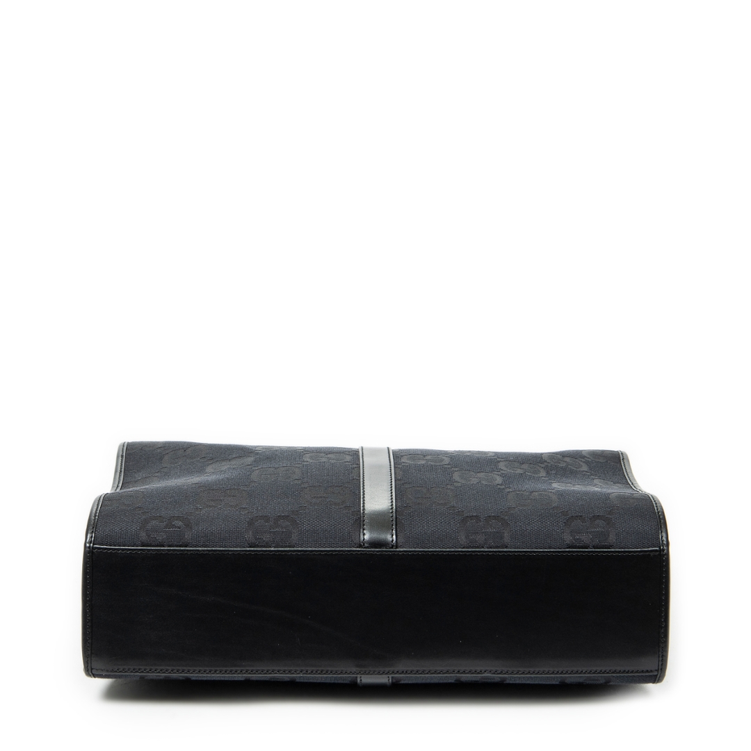 A vintage Gucci black canvas Bardot Tall Tote bag with a certificate of authenticity, Approximately 32cm height, 33cm width.