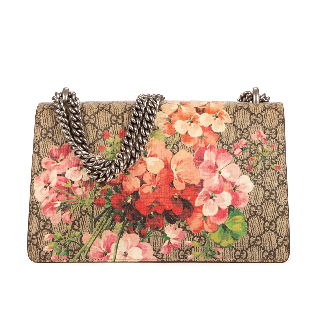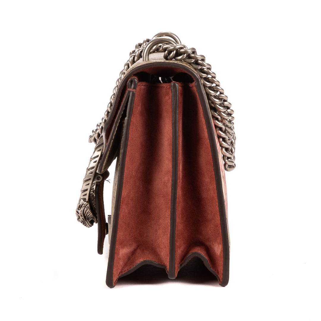 A vintage Gucci beige/red coated canvas Blooms Dionysus bag with a certificate of authenticity, Approximately 16cm height, 27cm width.