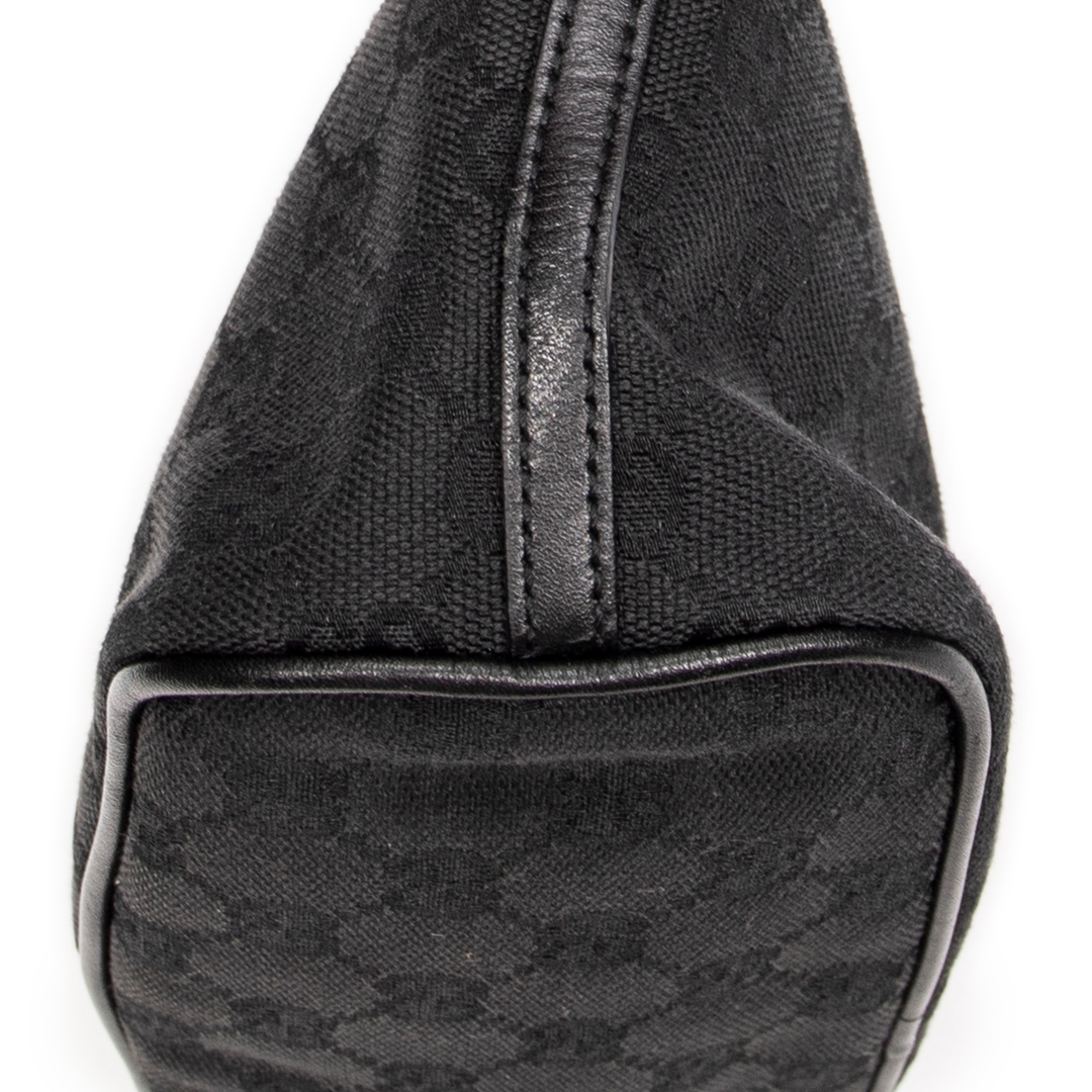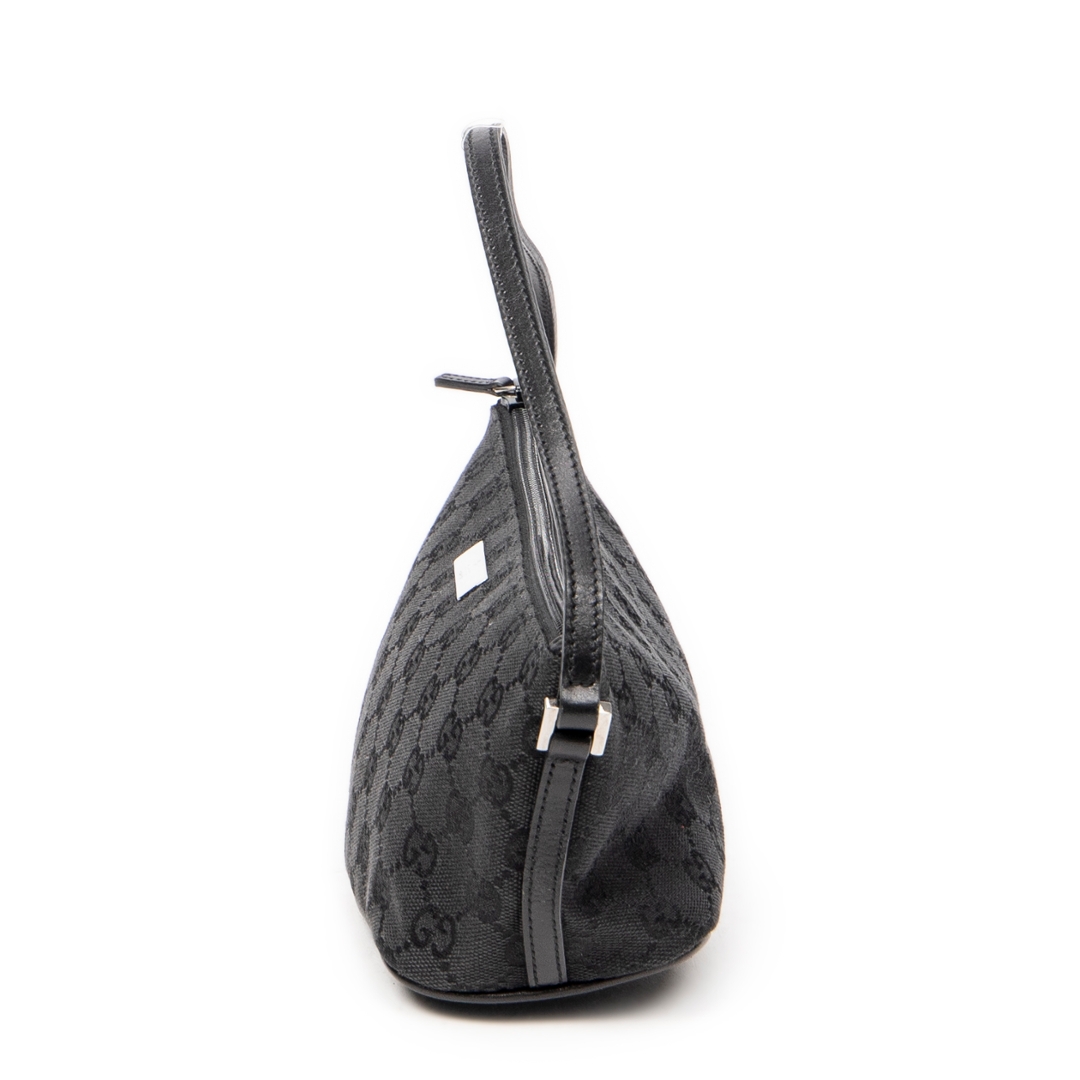 A vintage Gucci black canvas Boat Pochette bag with a certificate of authenticity, Approximately 10cm height, 22cm width.