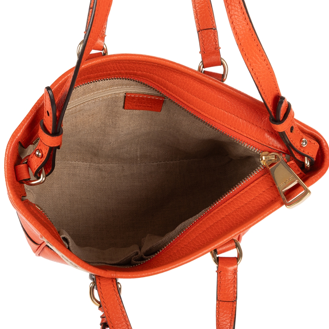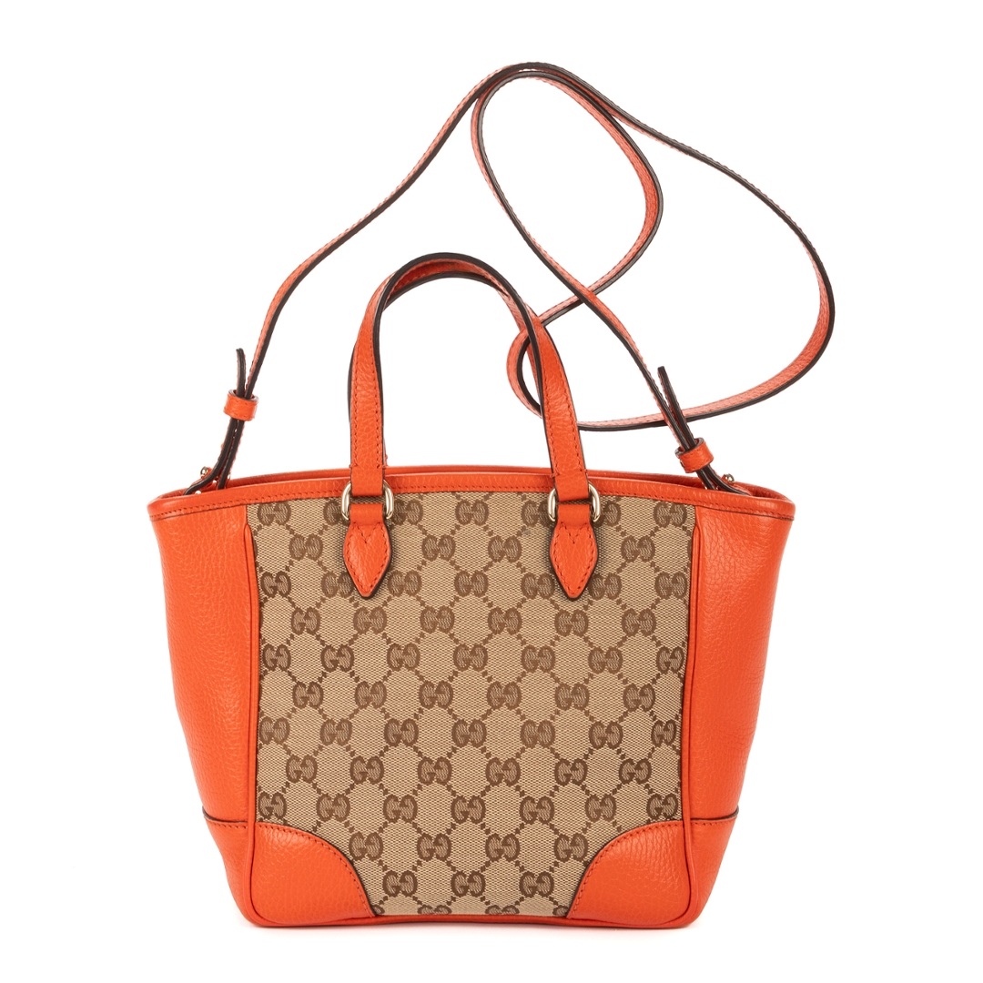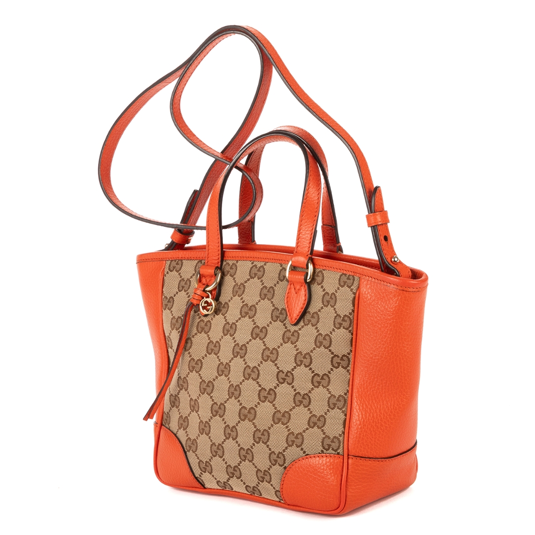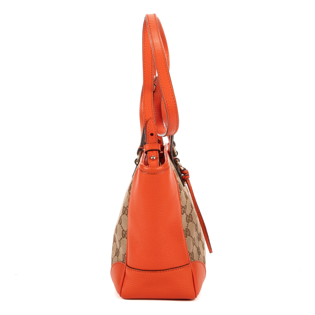 A vintage Gucci beoge/orange calf leather Bree GG Tote bag with a certificate of authenticity, Approximately 20cm height, 20cm width.