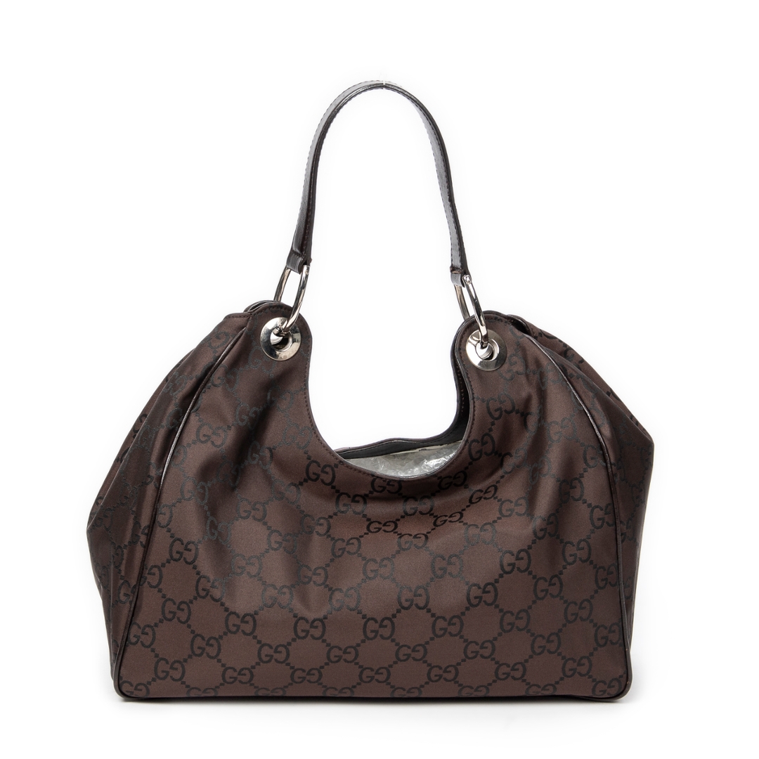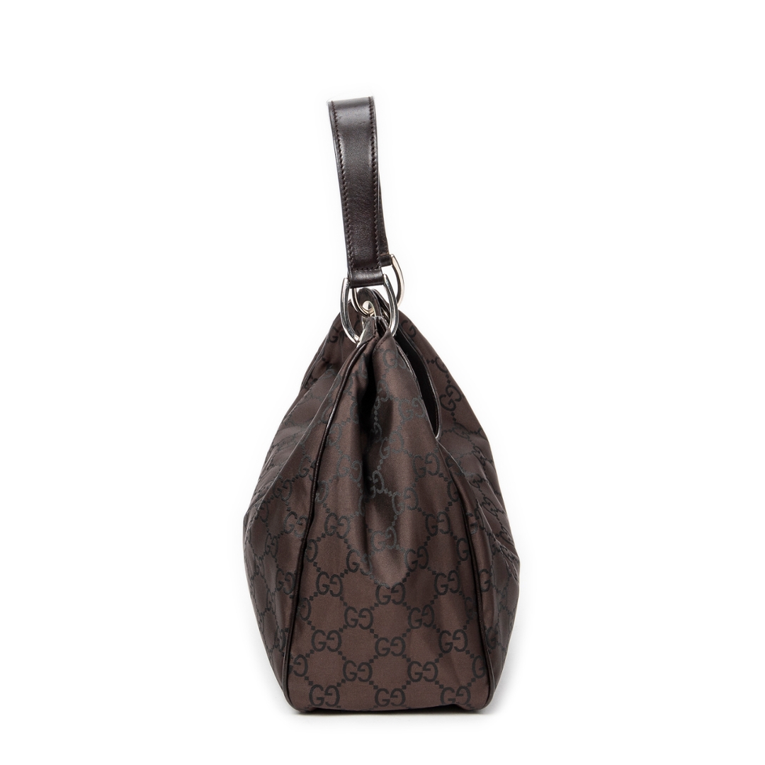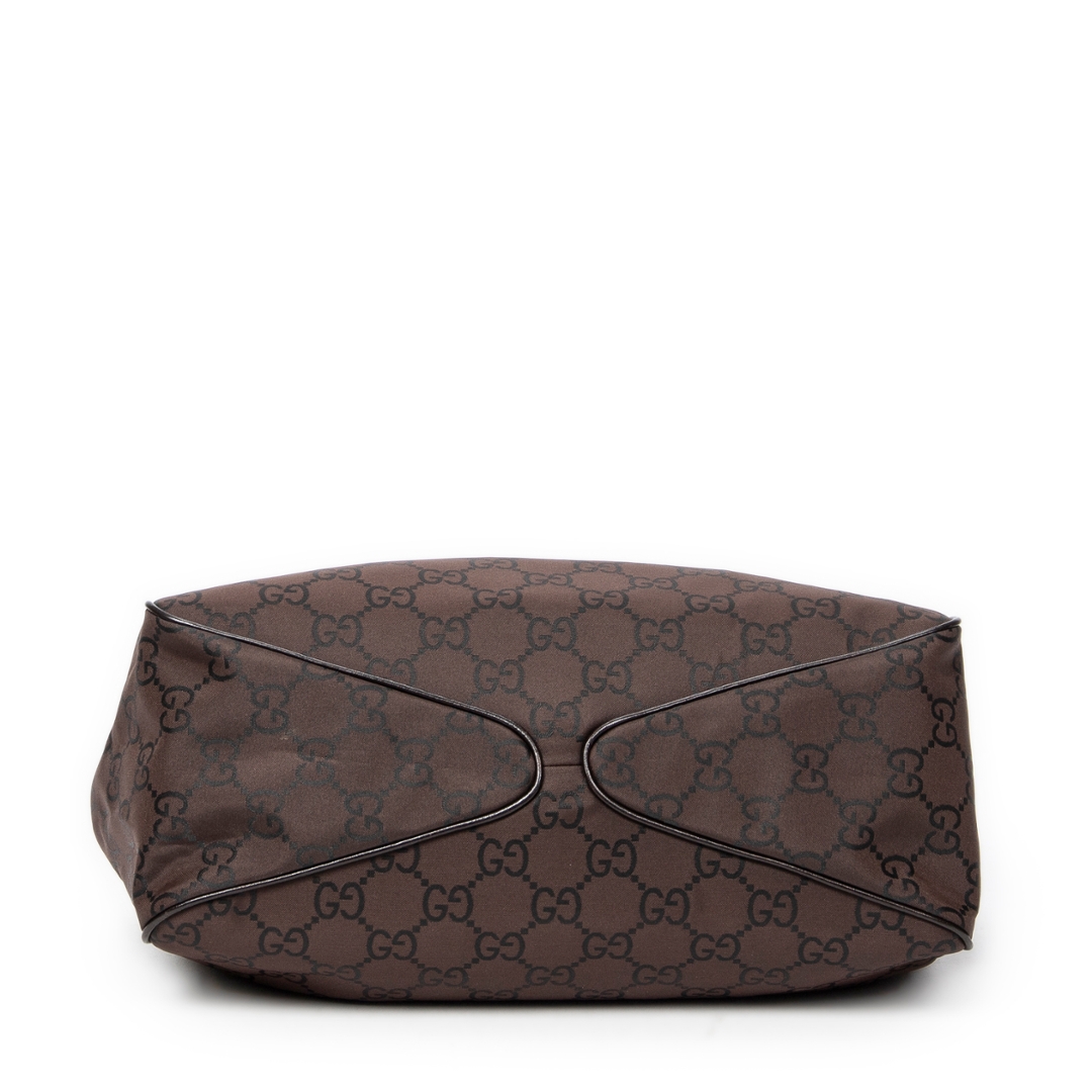 A vintage Gucci brown canvas Colbert Hobo bag with a certificate of authenticity. Approximately 20cm height, 34cm width.